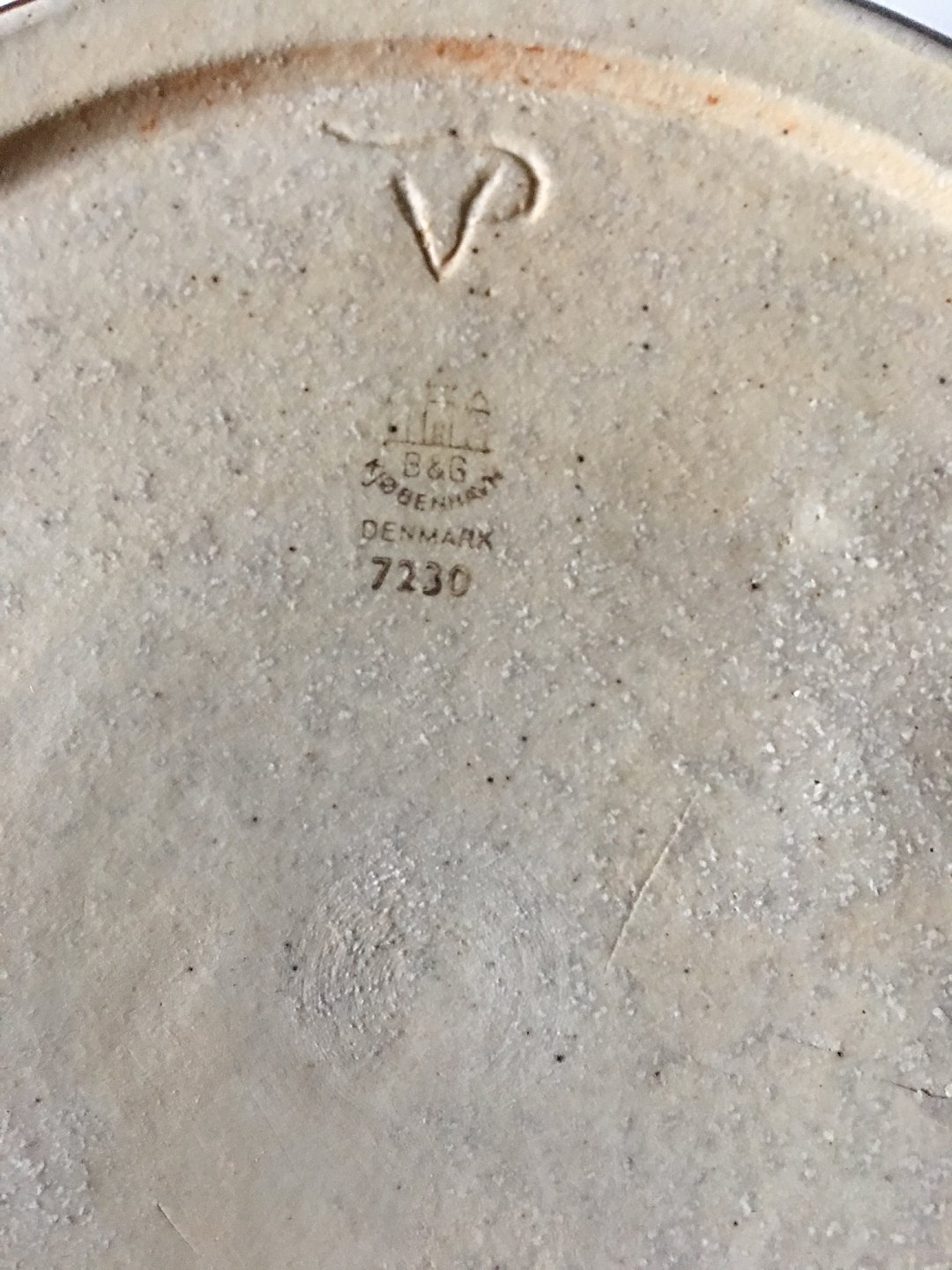 Bing & Grøndahl Stentøjsskål No. 7230 Valdemar Petersen. 17 cm diameter. 4.5 cm Høj. I pæn stand.