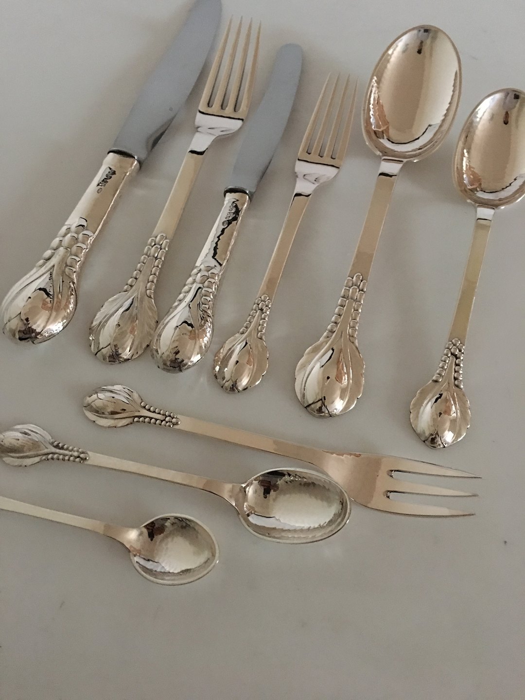 Evald Nielsen No. 3 Sølv Bestiksæt til 6 Pers. 47 Dele. Mangler en enkelt spisekniv. Sættet består af flg:
