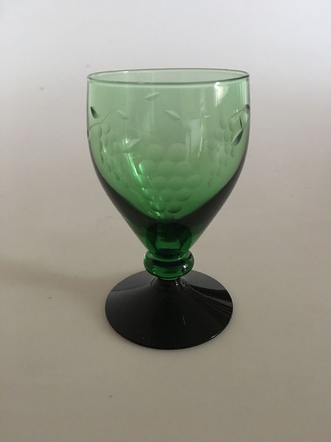 "Jane" Blackfooted White Wine Glass with Green Bouquet and ingraved grapes. Holmegaard. 10 cm H.
