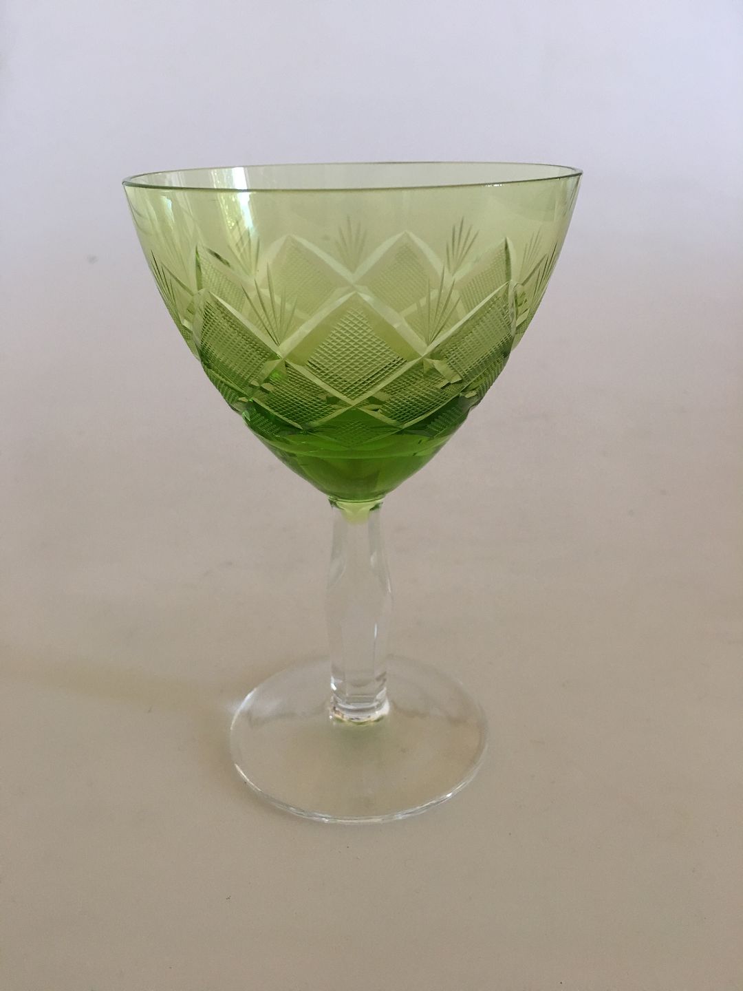 "Wienna Antique" Green White Wine Glass from Lyngby Glass. 12 cm (4 23/32 in). From around 1956.
