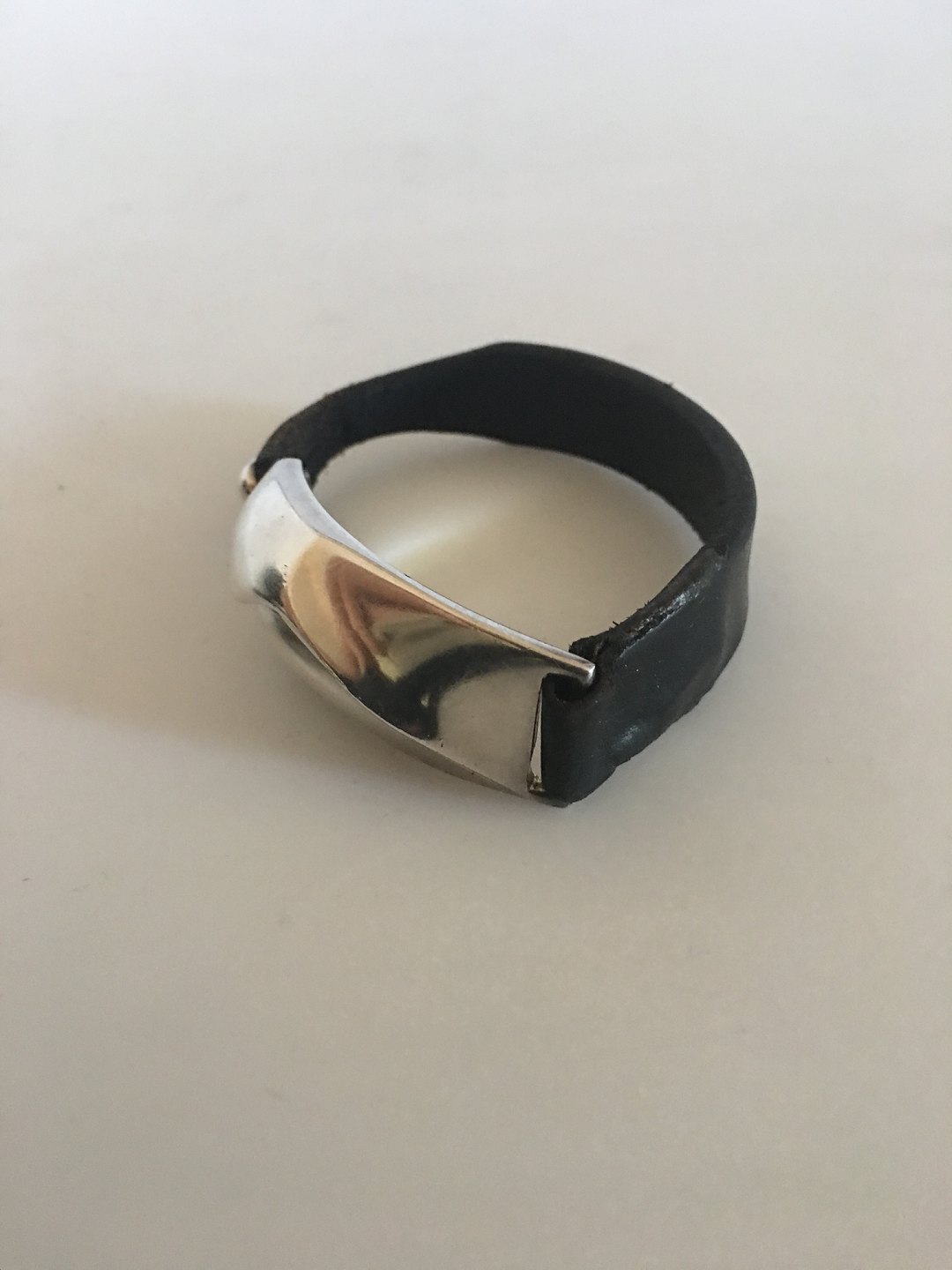 Lapponia Finland Leather Wristband with Sterling Silver Piece. Measures 18 cm / 7 3/32 in. Silver piece measures 5.5 cm / 2 11/64 in. x 1.9 cm / 0 4/4 in. Weighs 25 g / 0.90 oz.
