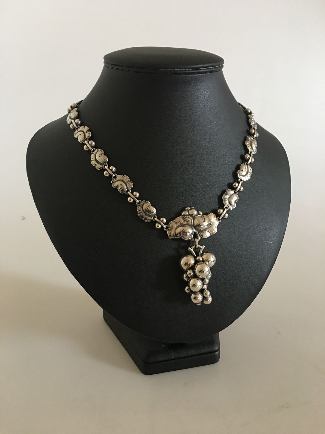 Georg Jensen Sterling Silver Necklace No. 96 with Grape Pendant Pieces. Measures 48 cm L. The pendant piece measures 6.8 cm L. Weighs 95 grams. Manufactured after 1945.