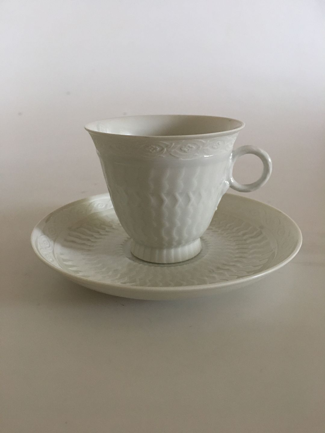 Royal Copenhagen White Fan Mocca Cup and Saucer No. 11538. 6.5 cm H.