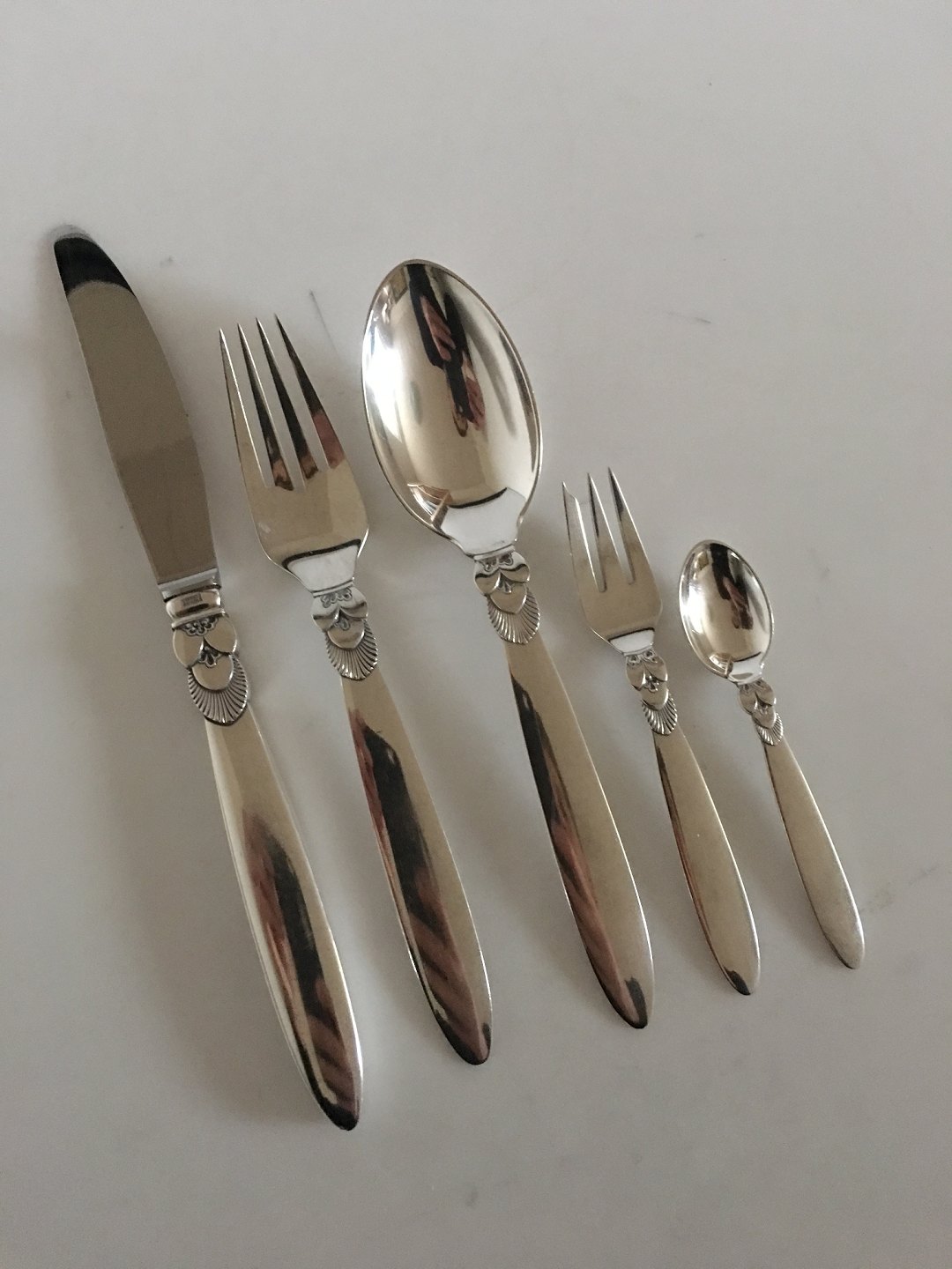 Georg Jensen Sterling Silver Cactus Flatware Set for 12 People. 60 Pieces. The set consists of the following items: