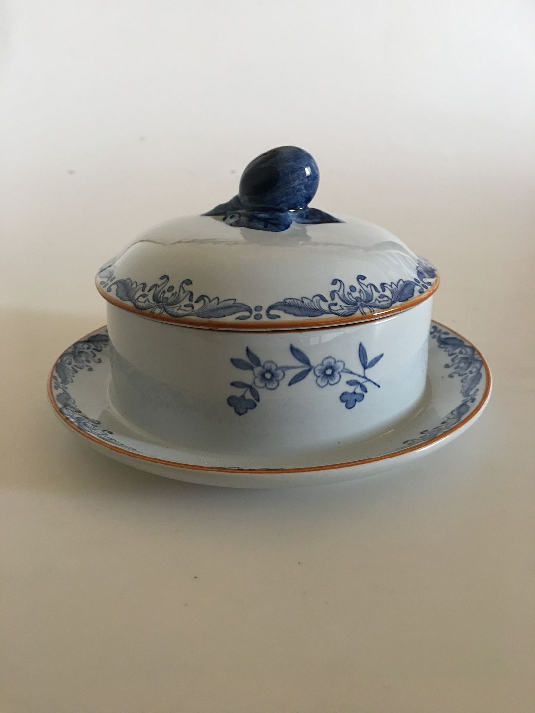 Ostindia / East Indies Rorstrand Butter Jar with Lid / Caviar Dish on Tray. 11.5 cm diameter bowl. 16 cm diameter saucer