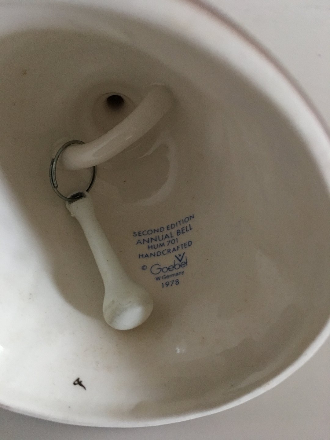 Hummel Årsklokke 1979 med bas-relief motiv. 2 Udg. 1978-1992. Goebel Porcelæn Tyskland. 15 cm H. 10 cm Ø.
