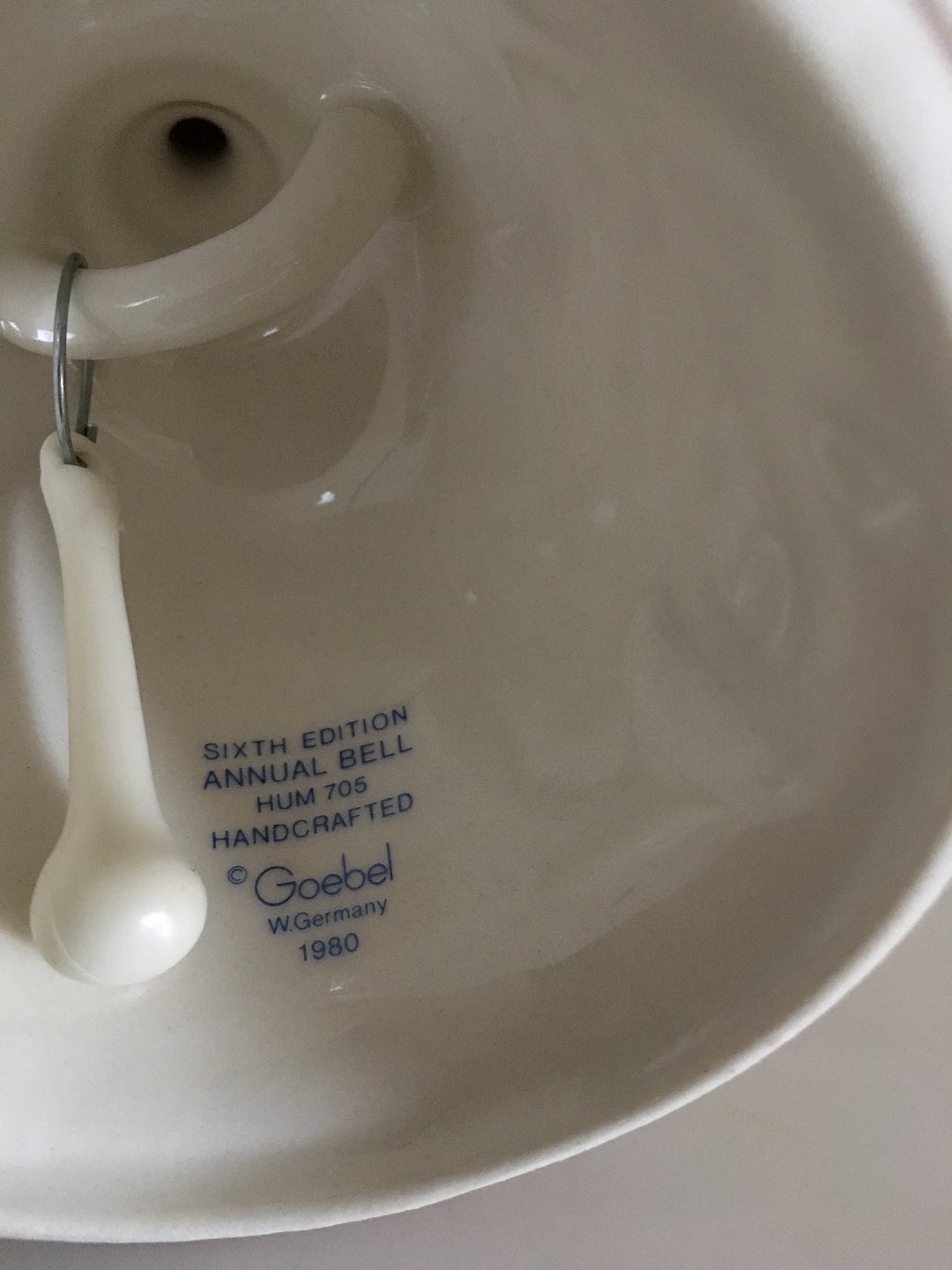 Hummel Årsklokke 1983 med bas-relief motiv. 6. Udg. 1978-1992. Goebel Porcelæn Tyskland. 15 cm H. 10 cm Ø.