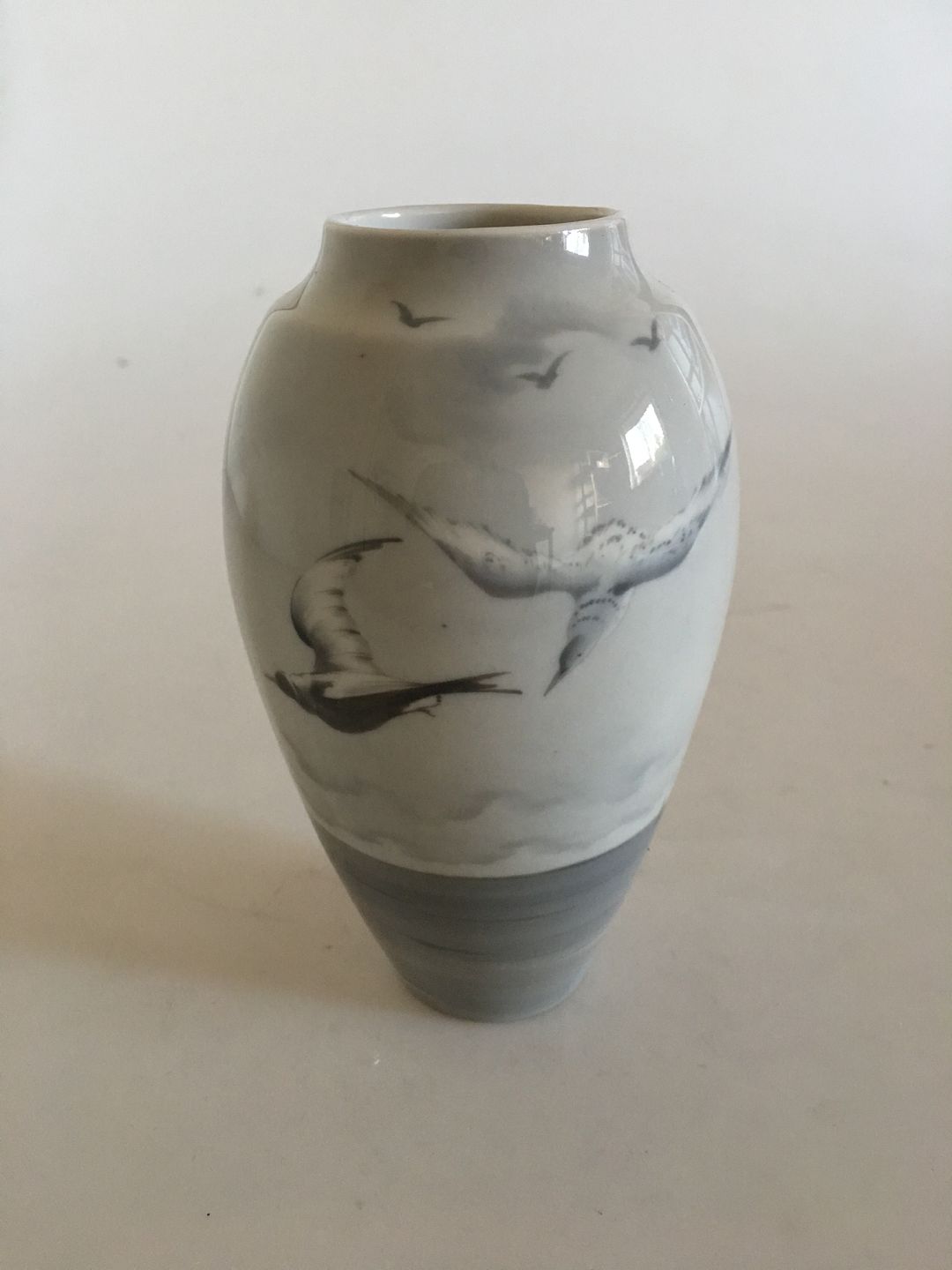 Heubach Art Nouveau Vase med Måge Motiv. 14 cm Høj. I fin stand.