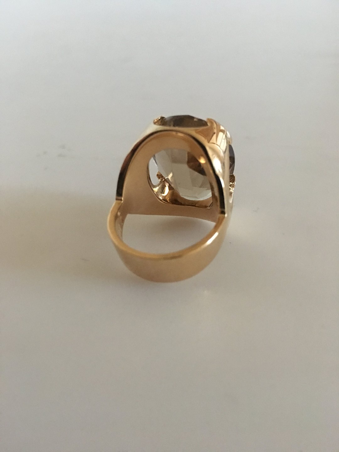 Georg Jensen 18K Guld Ring No 812 med Røgfarvet Quartz. Ringstørrelse 50. Vejer 12,6 gram. Fra efter 1945.