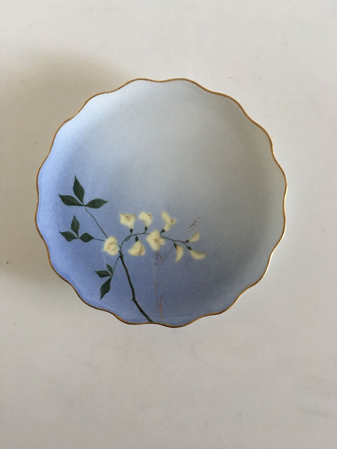 Bing & Grondahl Cake Plate with Flower decoration and Goldrim. 17 cm diameter.