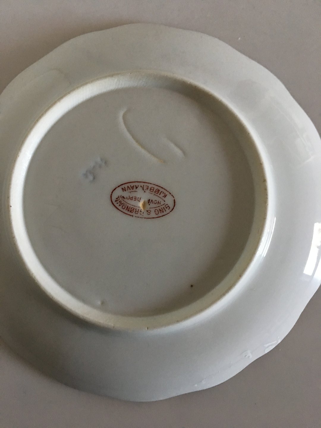 Bing & Grøndahl Kagetallerken med Blomsterdekoration og Guldkant. 17 cm diameter.