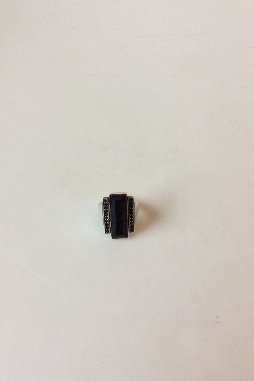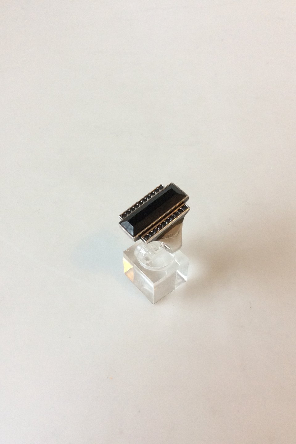 Georg Jensen Sterling Sølv Nocturne ring 571A med sort agat og behandlede pavéfattede sorte diamanter. Str 55. Design Regitze Overgaard.