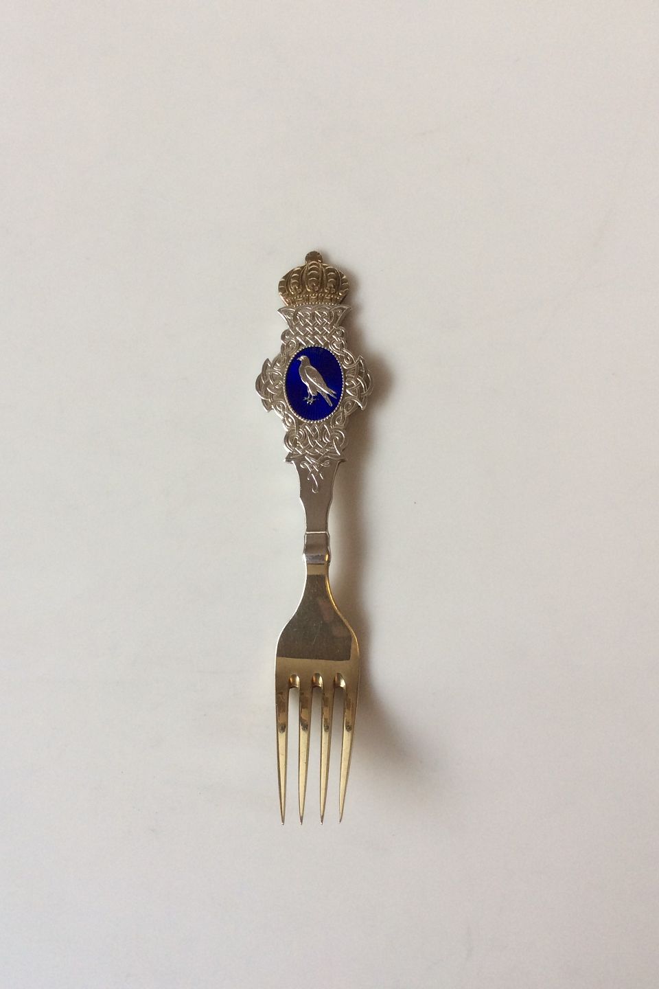 Anton Michelsen Mindegaffel i forgyldt Sterlingsølv, Islands falk, 1907. Måler 15,8 cm