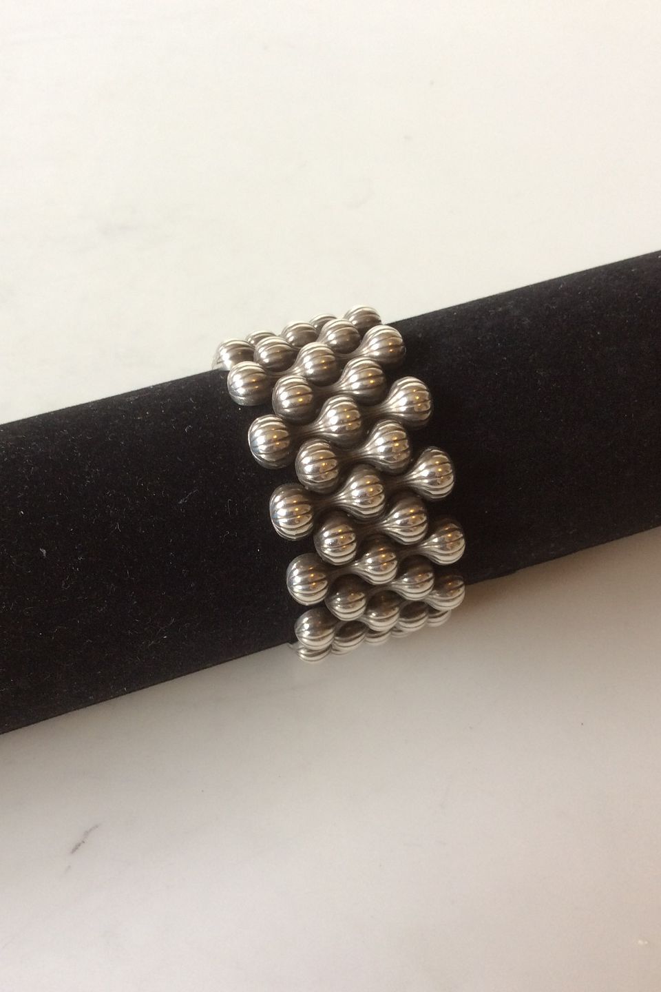 Georg Jensen Sterling Sølv Løgmønster armbånd af Arno Malinowski No 110. Måler 18,6 cm langt og 3,1 cm bredt. Vejer 101 g.