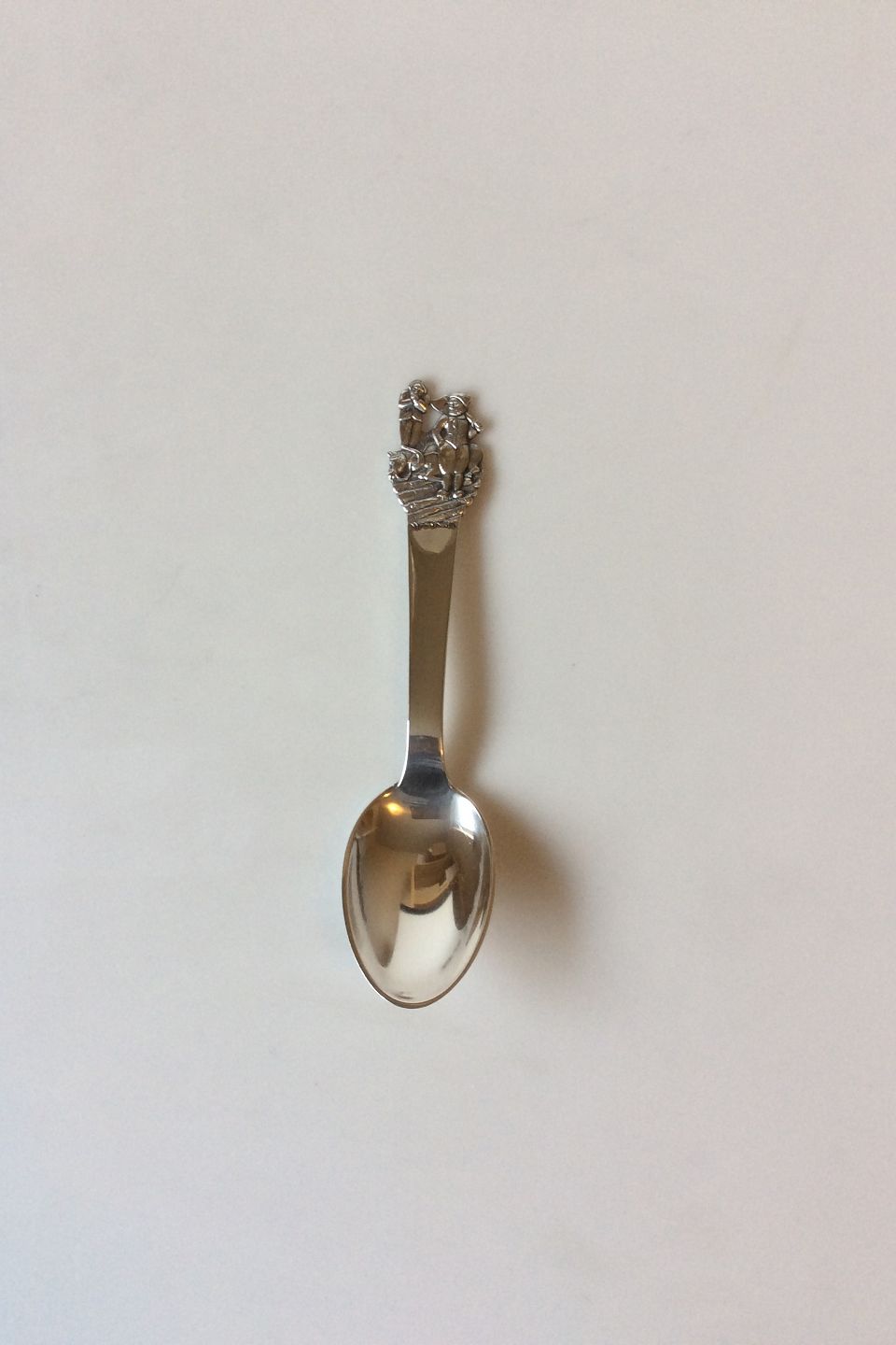H.C. Andersen Fairy tale Child Spoon in Silver. Little Claus and Big Claus. Measures 15 cm / 5 29/32 in.