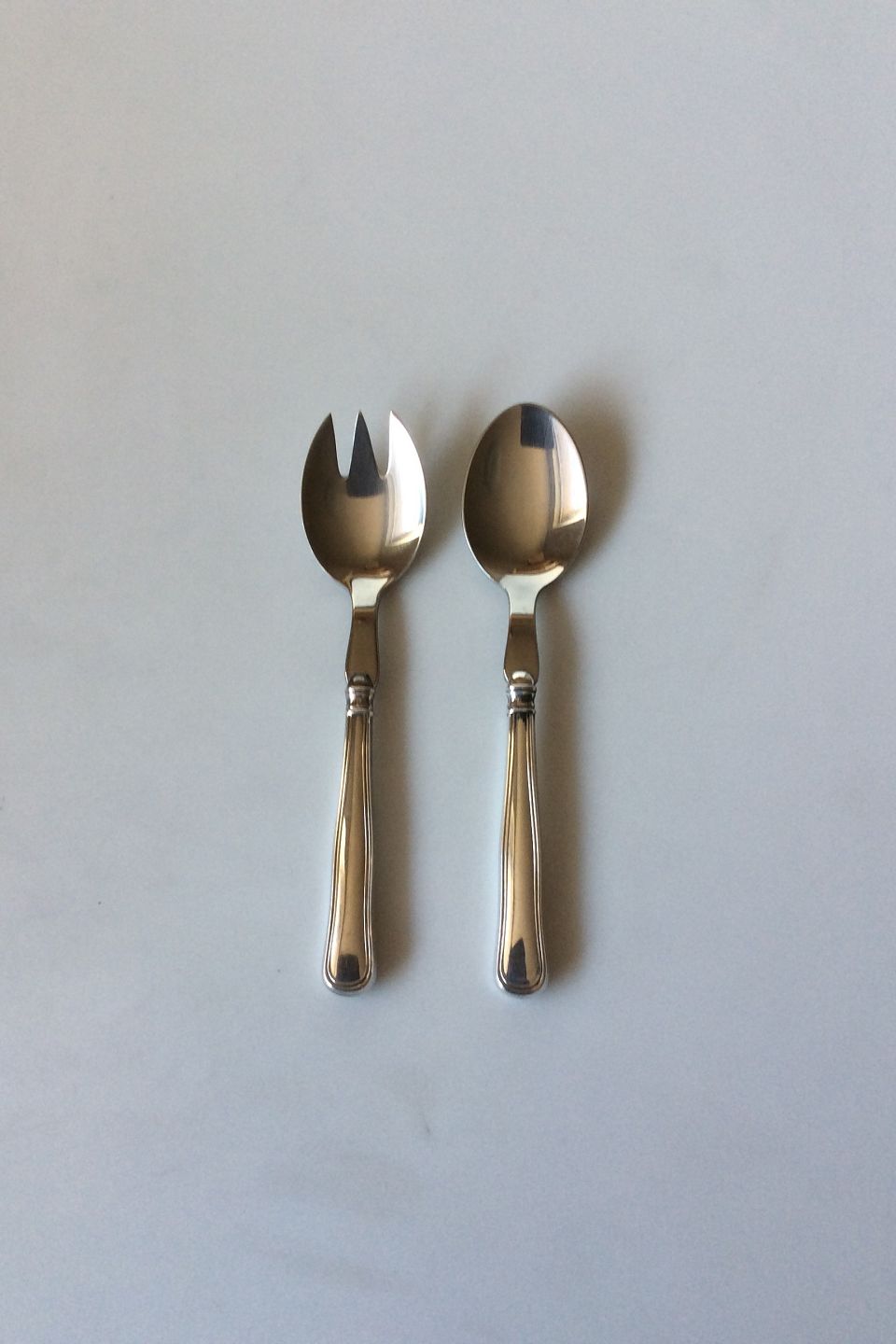 Cohr Dobbeltriflet Sølv 830S og Rustfrit stål Lille Salatsæt. Måler 13 cm (5.11 inch)