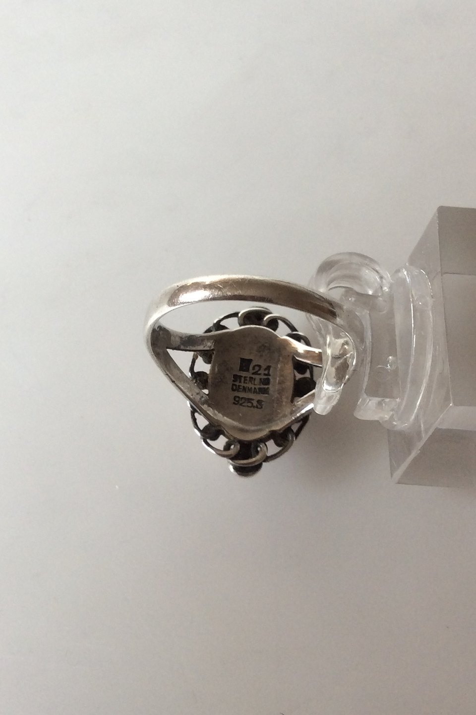 Georg Jensen Sterling Sølv Ring med Pink sten / koral No 21. Ringstørrelse 60 / 9 1/4 US. Vejer < 5 g. Fra 1932-1945.