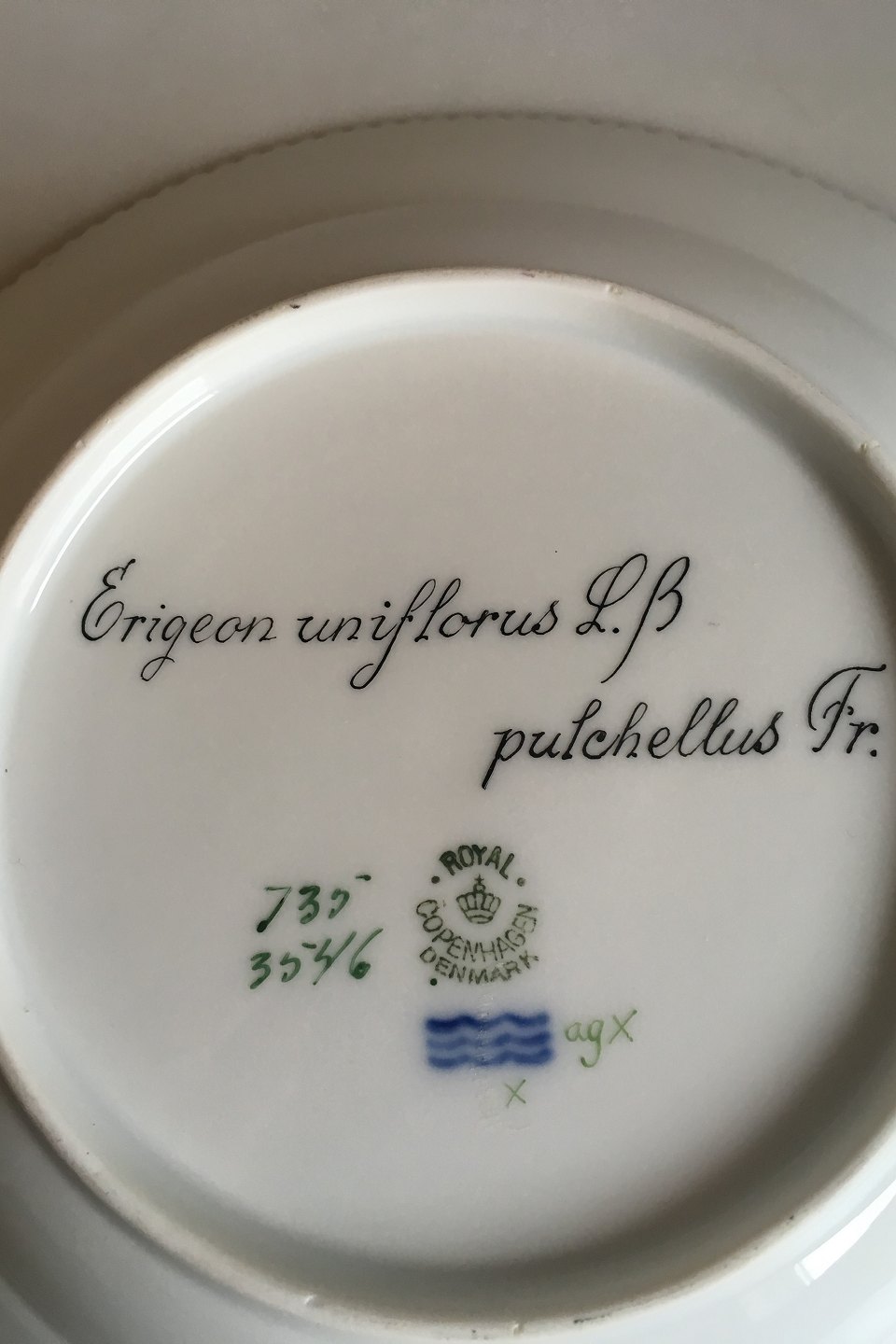 Royal Copenhagen Flora Danica Deserttallerken No 735/3546. Latinsk navn: Erigeon uniflorus L. B. Pulchellus Fr..