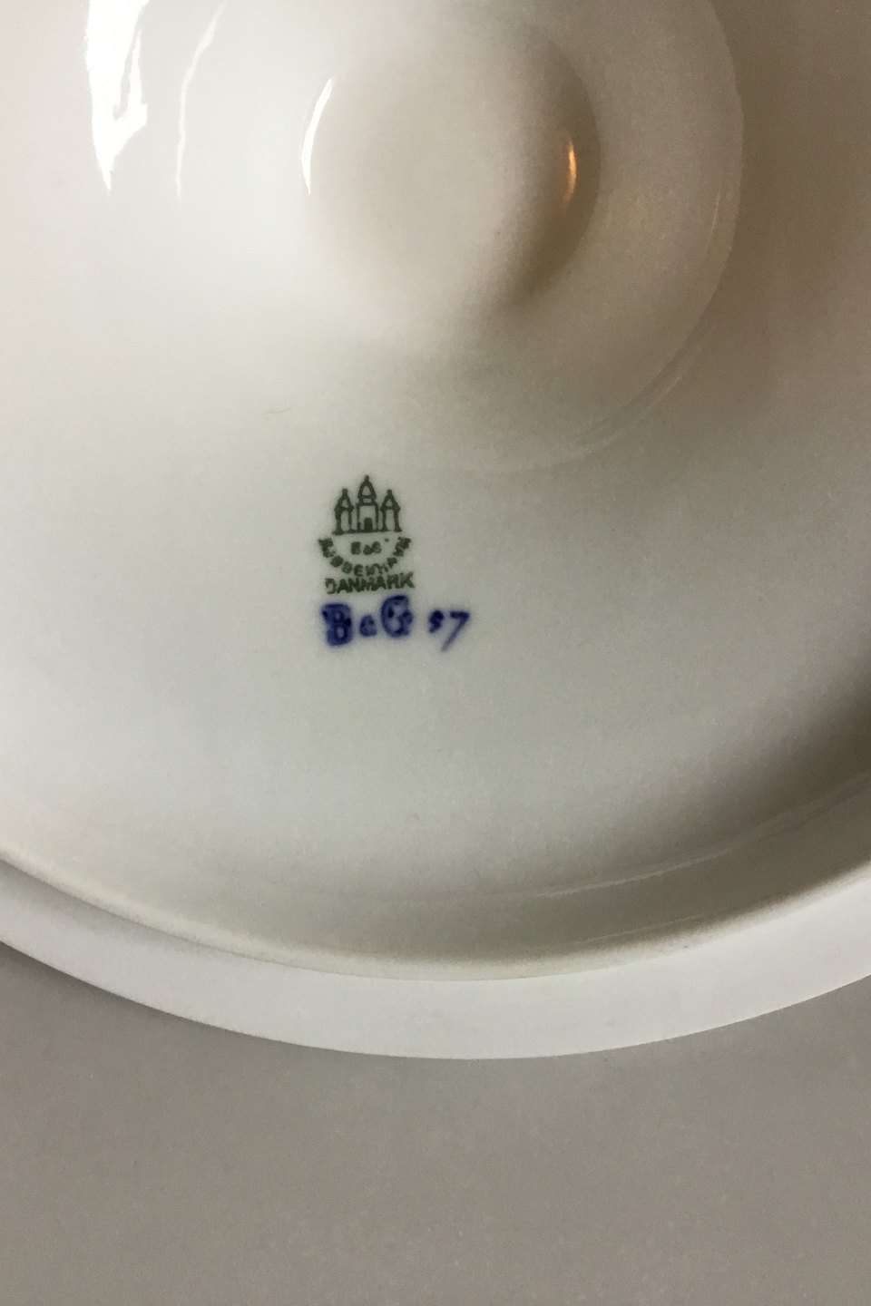 Bing & Grøndahl Jubilæumsstel / Blå Nellike Stor Terrin med underfad Måler 25 cm dia. 30 cm høj. I fin stand. Skabt af Hans Tegner i 1928. Bing & Grøndahls 75 Års Jubilæum.