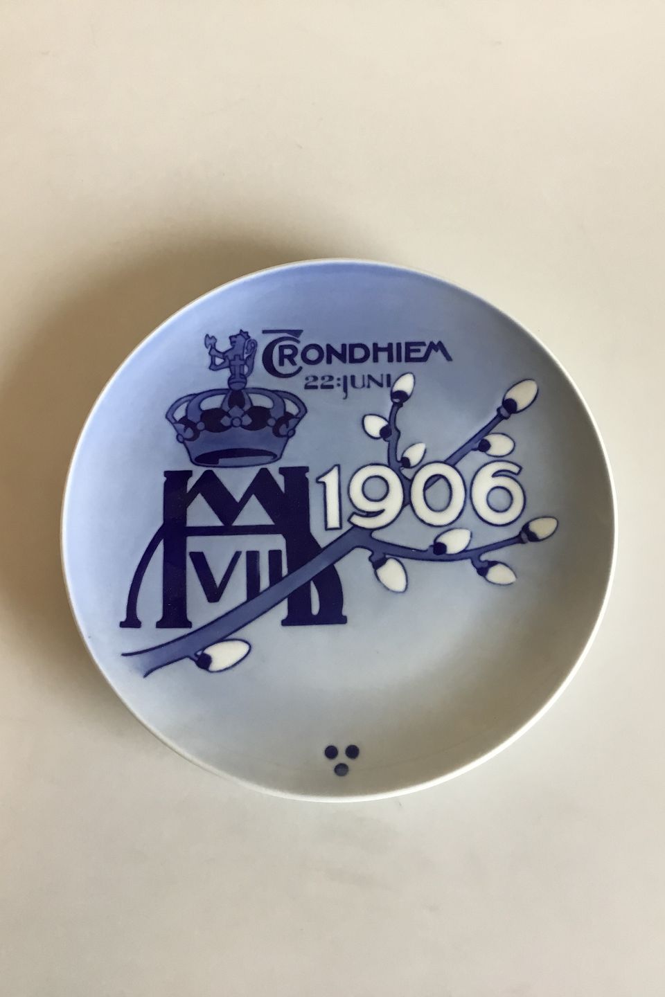 Porsgrund Commemorative Plate from 1906 for the Coronation of Haakon VIII in Trondheim June 22nd 1906. Måler 23.7 cm / 9 21/64"