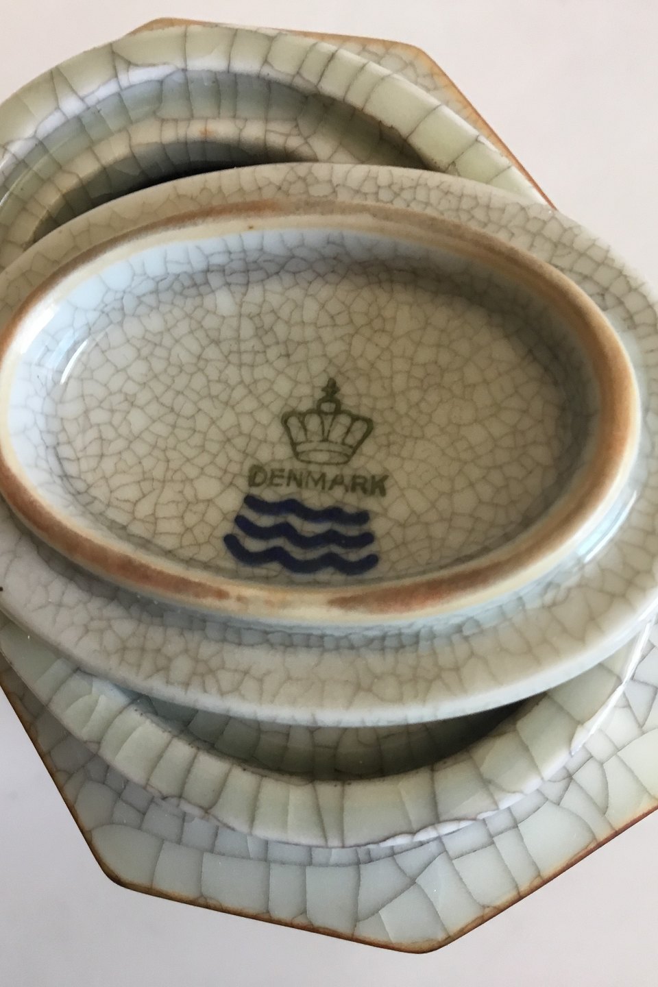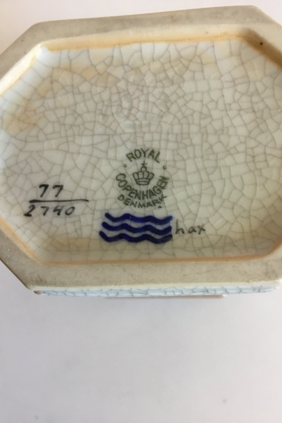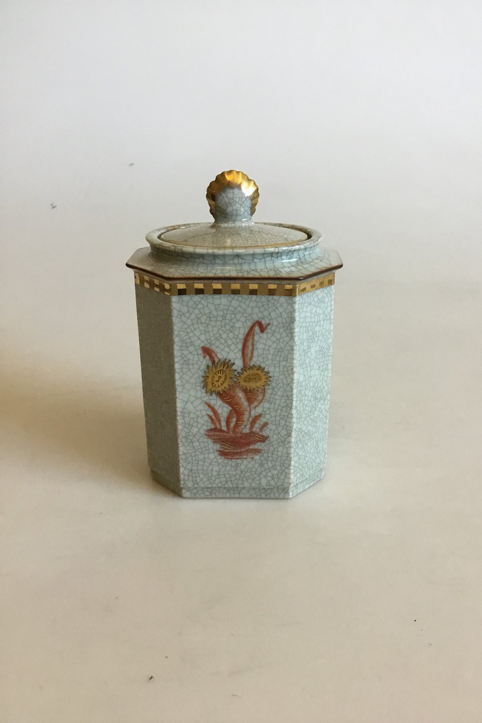 Royal Copenhagen Krakele Porcelæn Kantet Tedåse med låg No 77/2740. Dekoration i orange og guld. Måler 12 cm