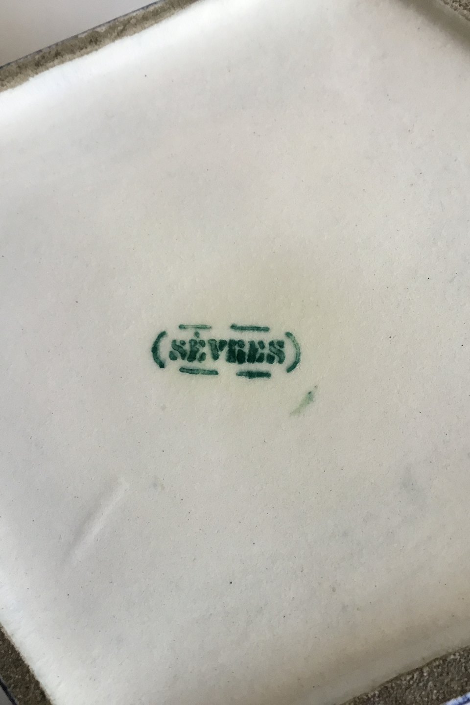 Sèvres Rombeformet blå porcelænsæske med tinmontering og opal/opallignende sten. Måler 11 cm x 15 cm x 5 cm