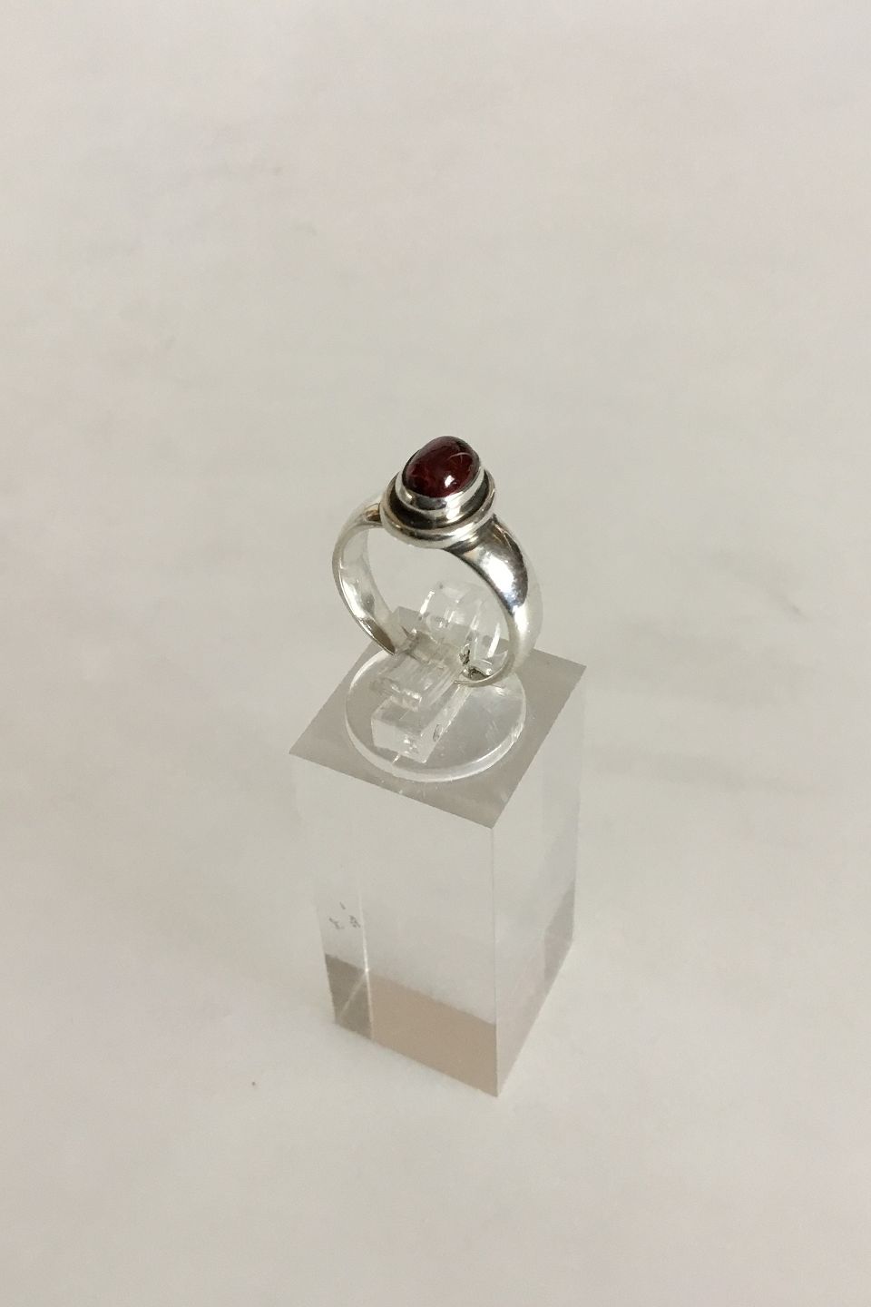 Georg Jensen Sterling Sølvring No 46C med rød sten. Ringstørrelse 49. Vejer 3,8 g. Stenen måler ca. 0.6 cm. I fin stand.