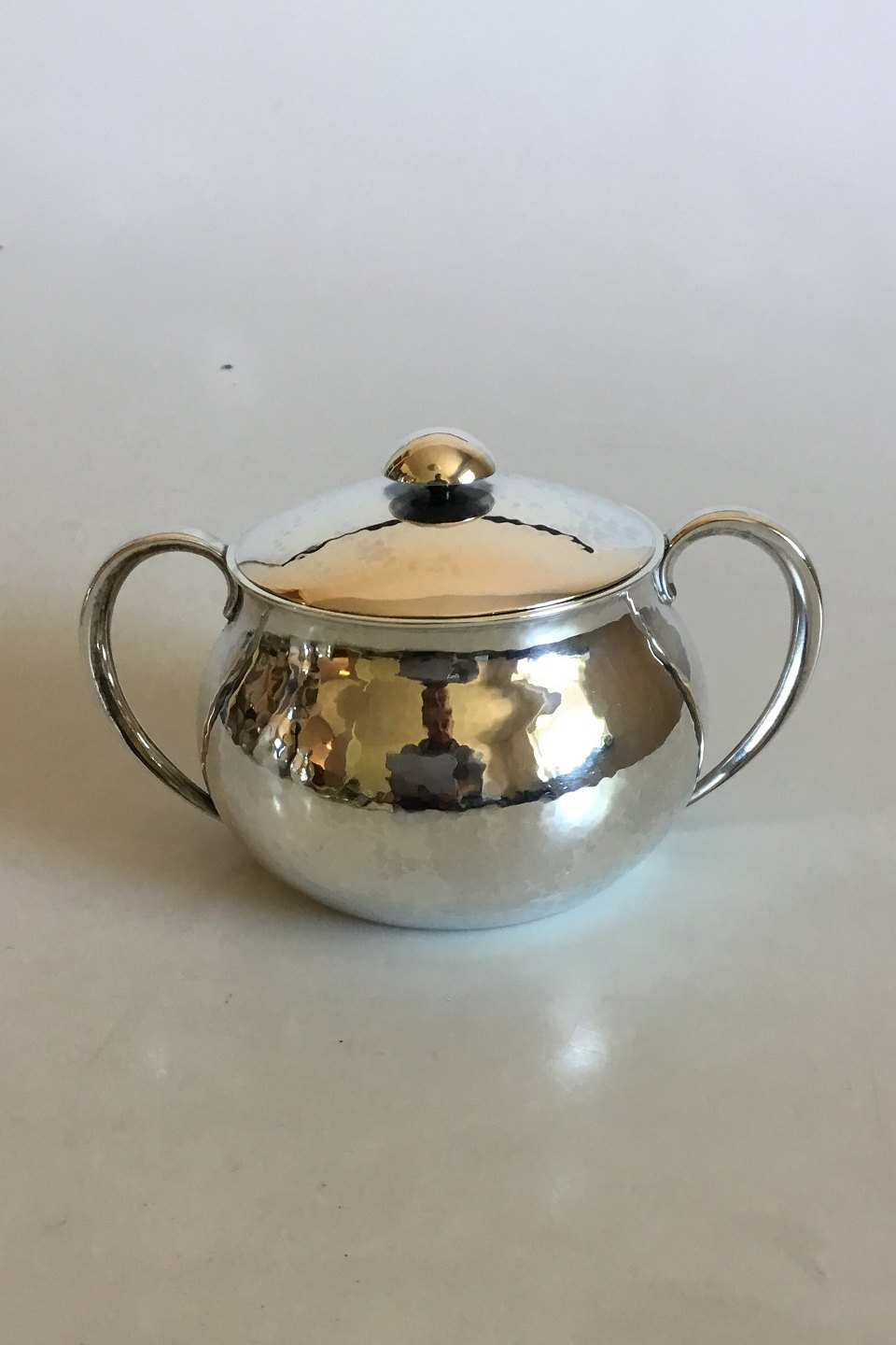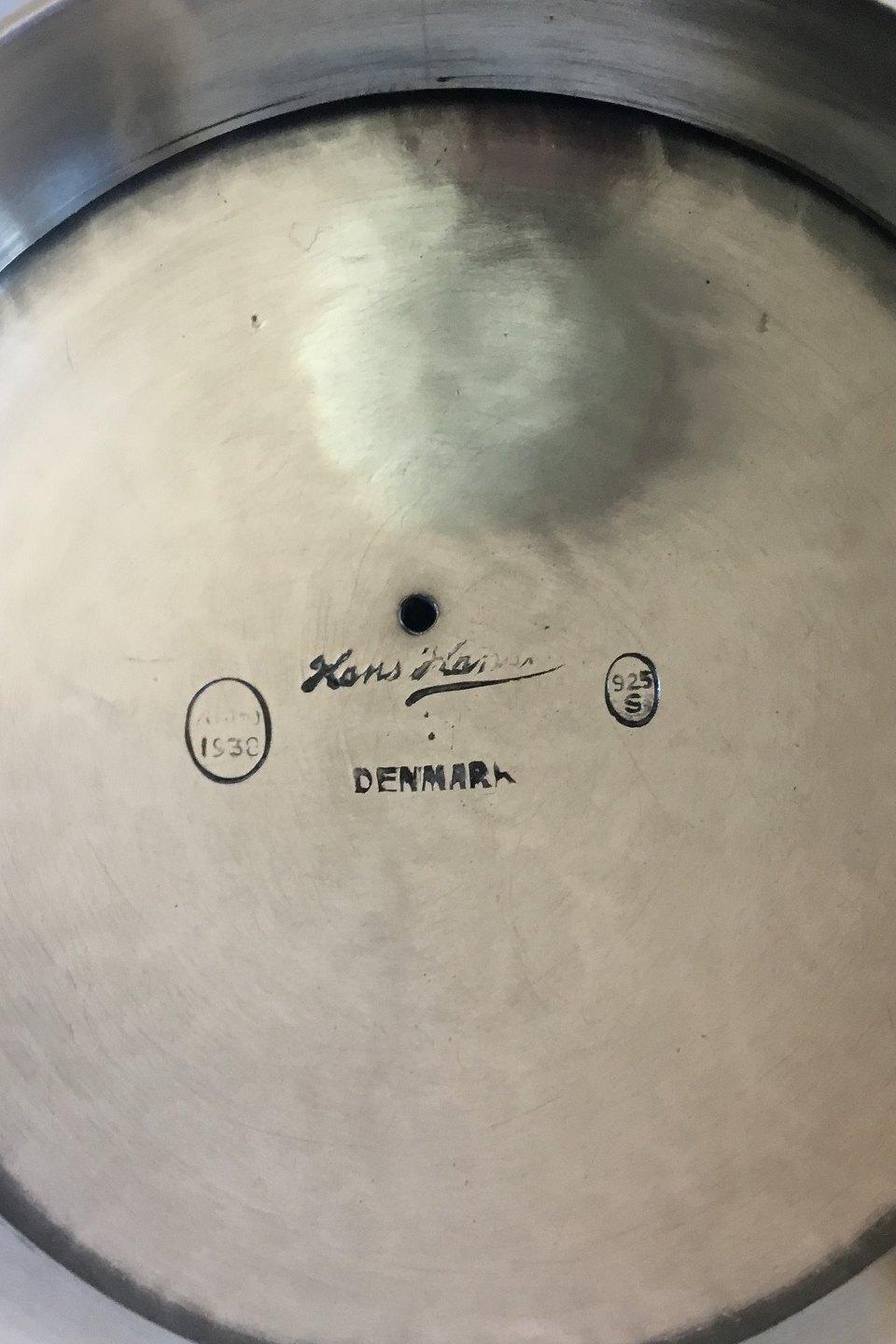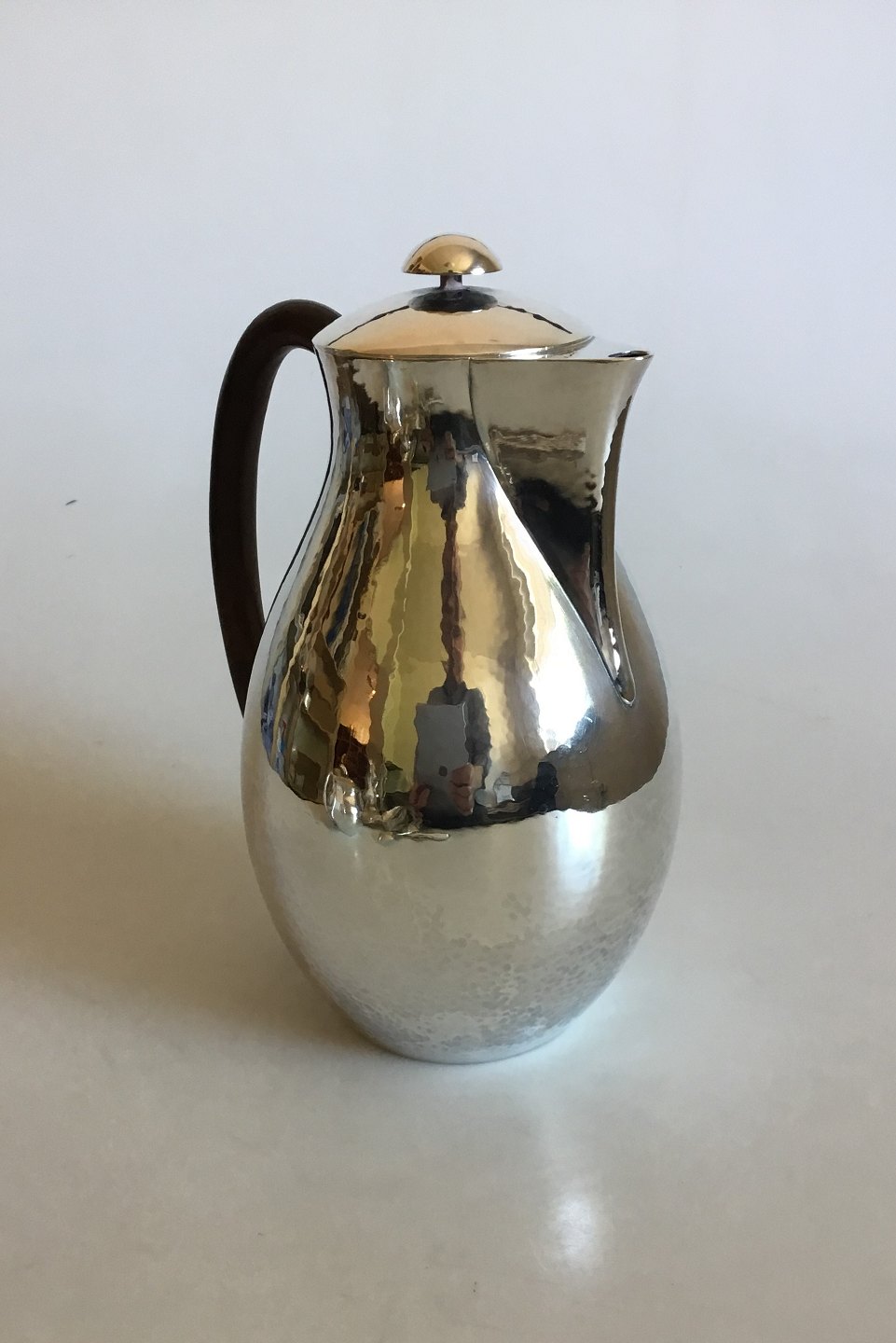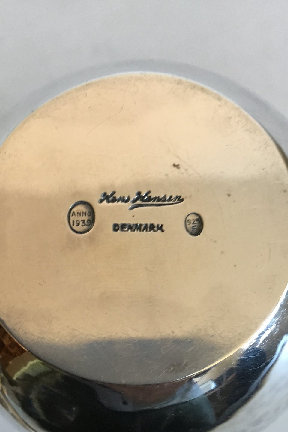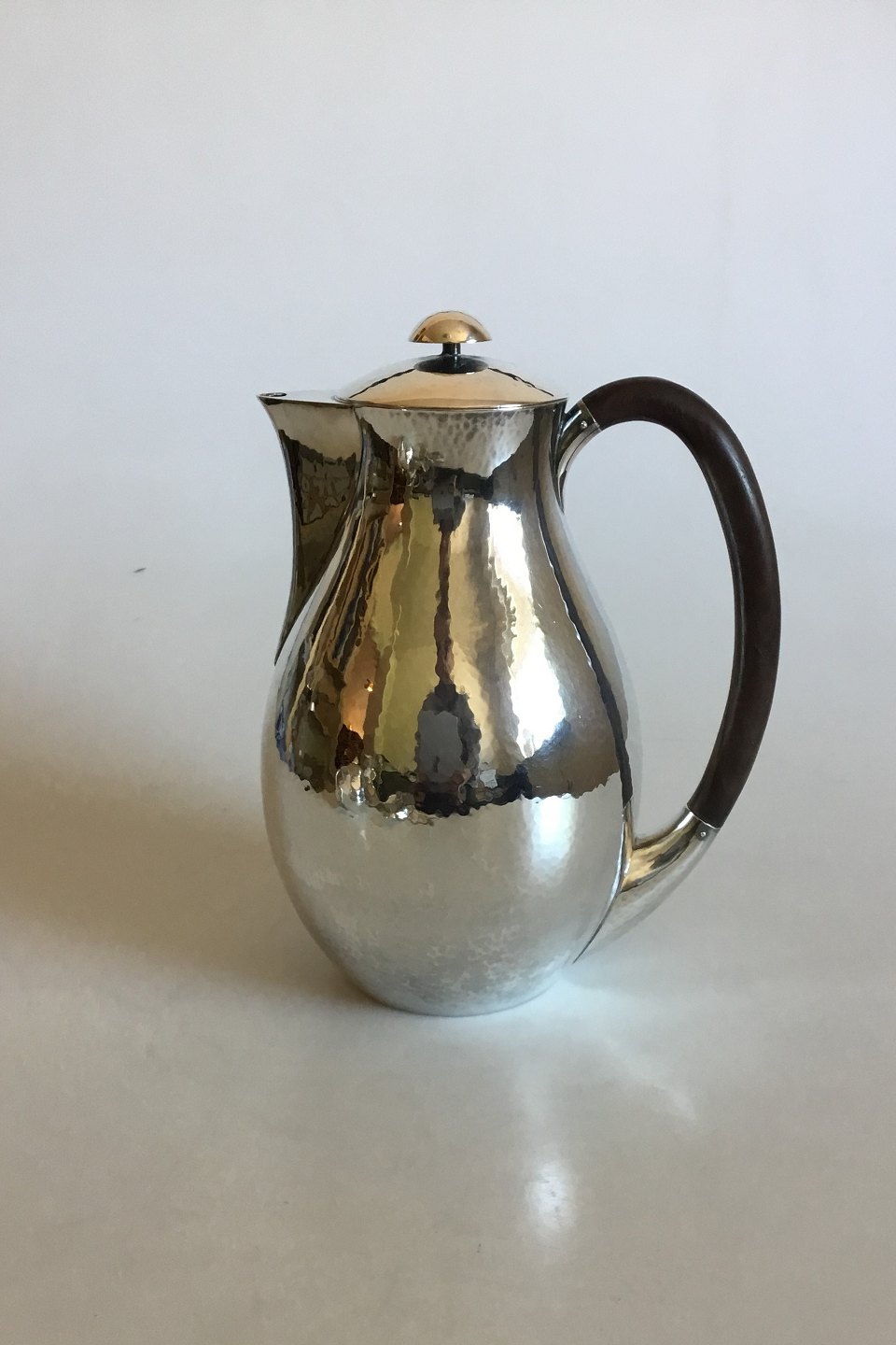Hans Hansen Sterling Sølv Kaffesæt. Består af kaffekande , flødekande og sukkerskål. Håndtag af træ. Kaffekande 20,5 cm, vejer 619 gram. Flødekande 11,5 cm, vejer 222 gram. Sukkerskål 9 cm, vejer 400 gram.