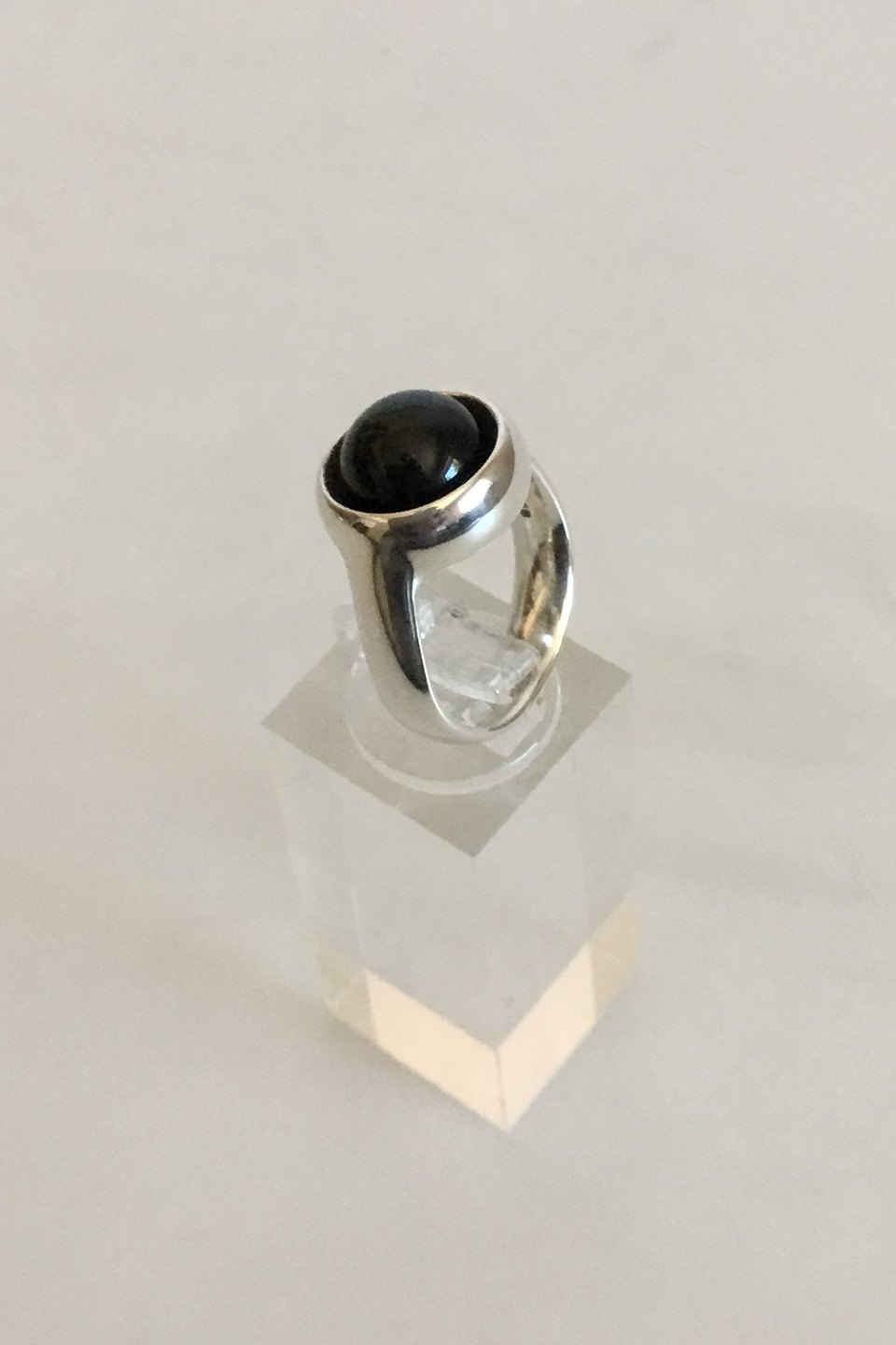 Georg Jensen Sterling Sølv Sphere Ring No 473 med Sort Agat. Designet af Regitze Overgaard. Ringstørrelse 50. Vejer 8,9 gram