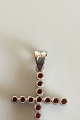 Pendant in 18 K. White gold shaped like cross with 16 red stones
