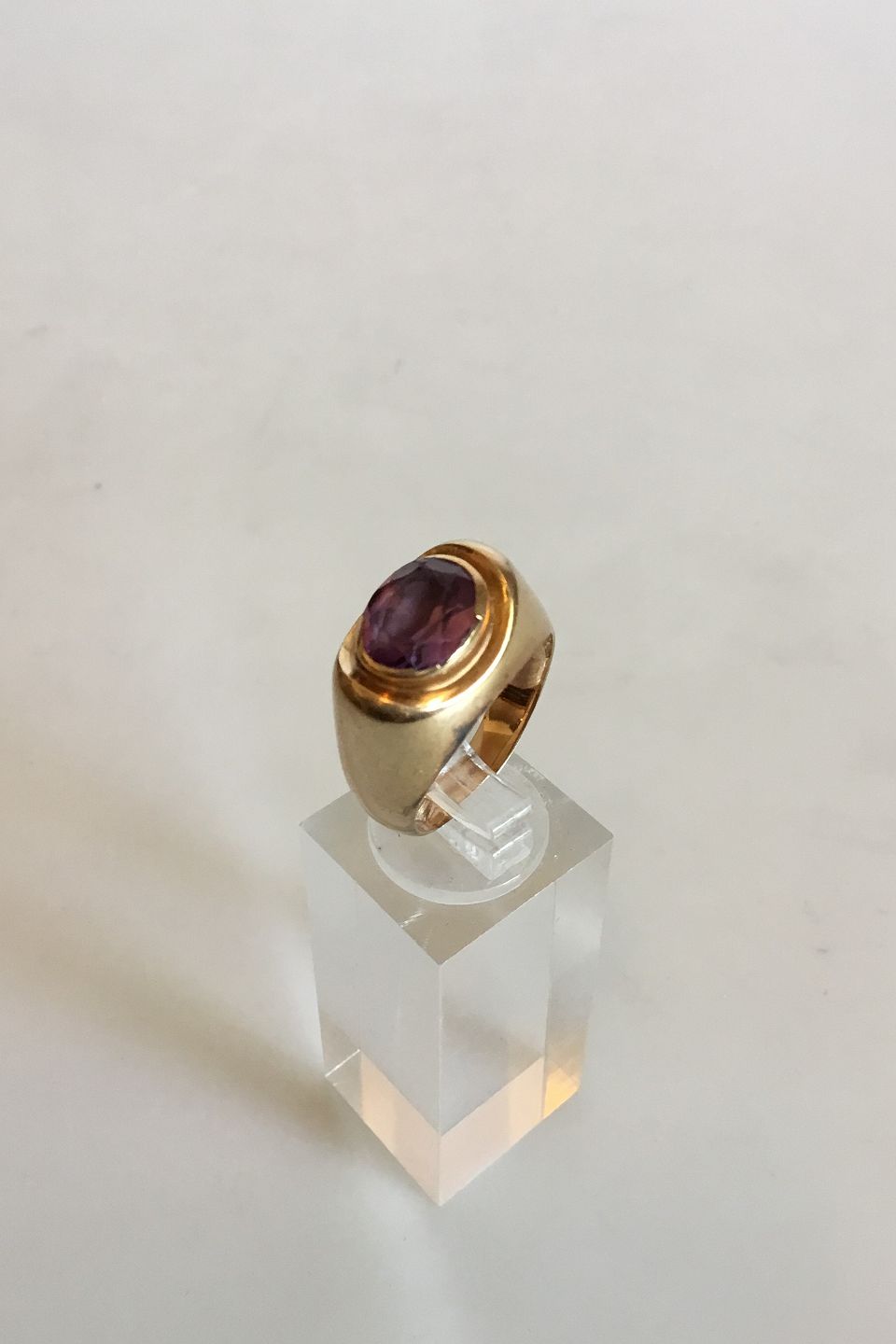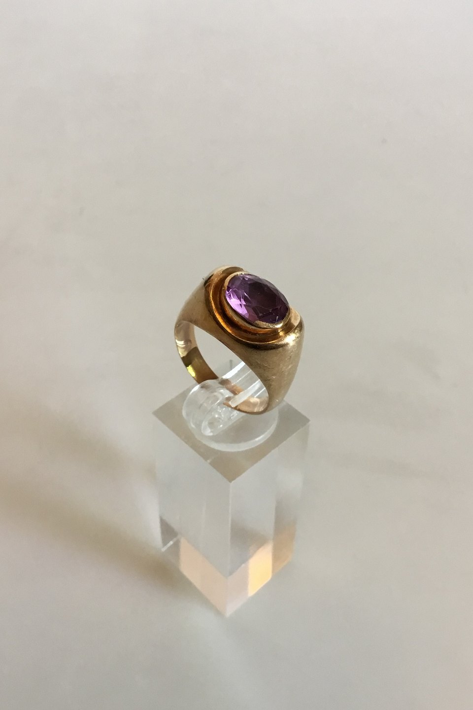 Gold Ring with Amethyst. 14 K. Ring Size 58 / 8 3/4. Weighs 6.51 g / 0.23 oz. Stamped 585