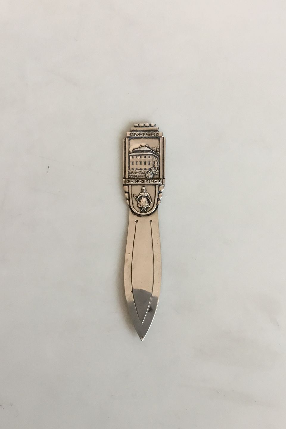 Danske guldsmedes sølvvarefabrik Bogmærke i Sølv. "Hadsten Husholdningsskole". Med indgravering. Lidt buler. Måler 9,8 cm