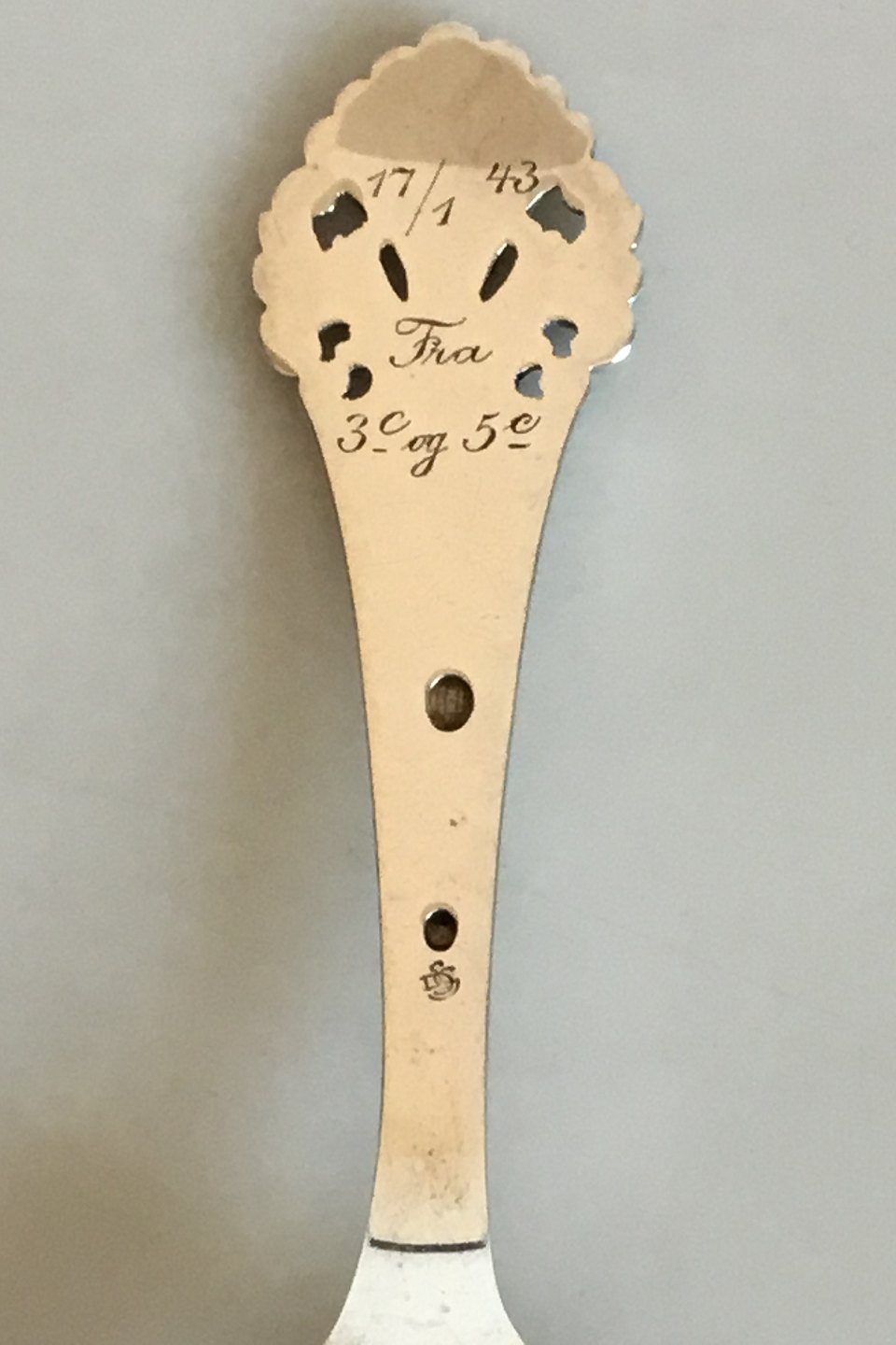 Konfektspade i sølv. Måler 13,5 cm. Med indgravering