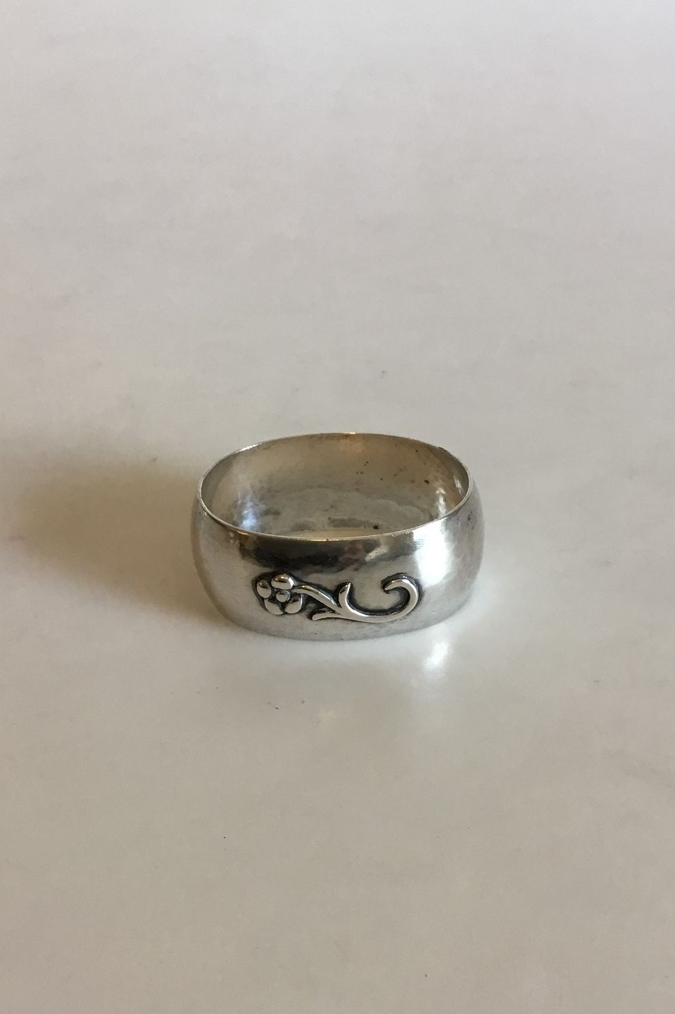 Servietring i Hammerslået 830 Sølv med Blomst. Måler 4,8 cm x 3,7 cm. Vejer 16,6 gram