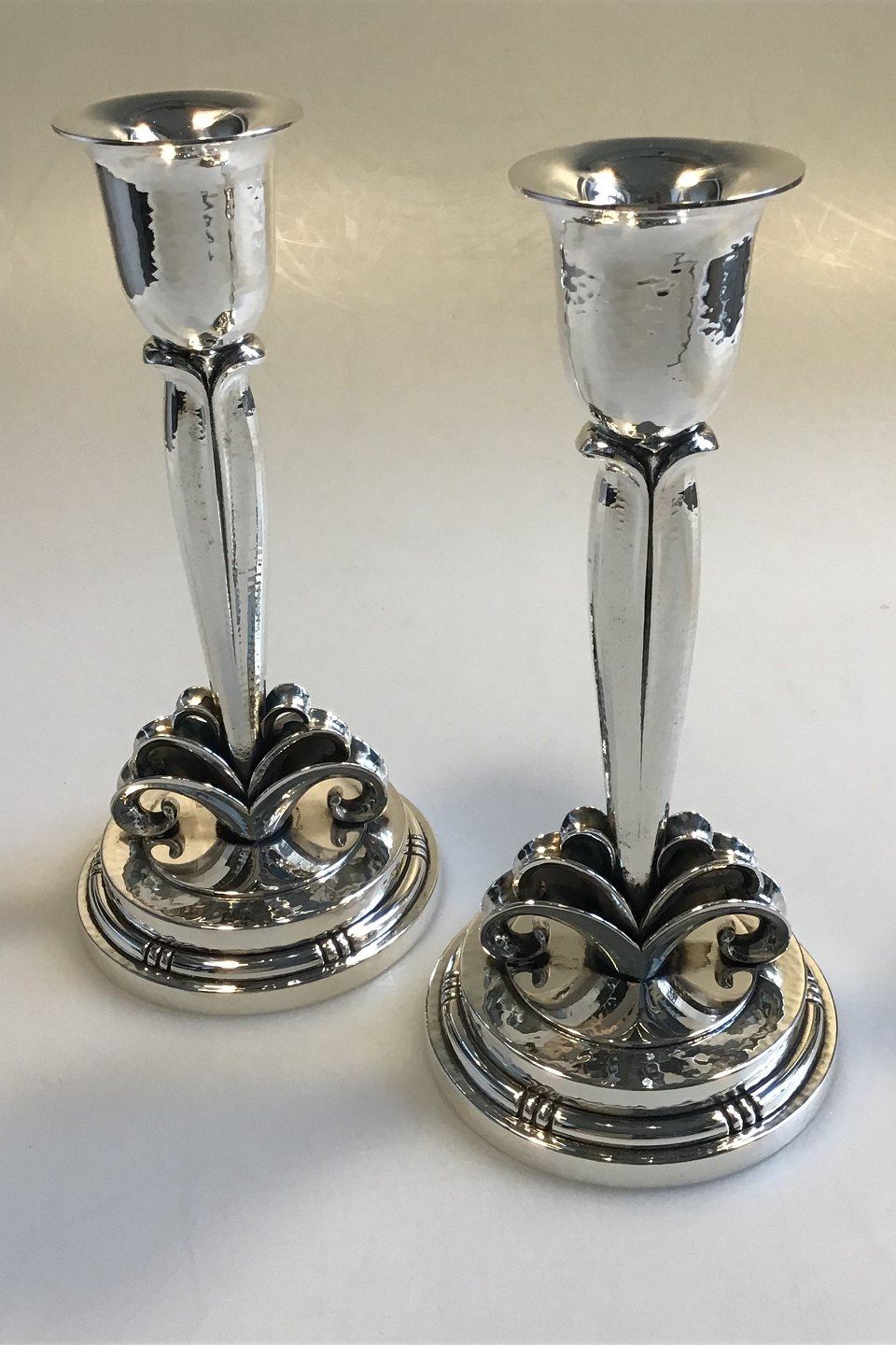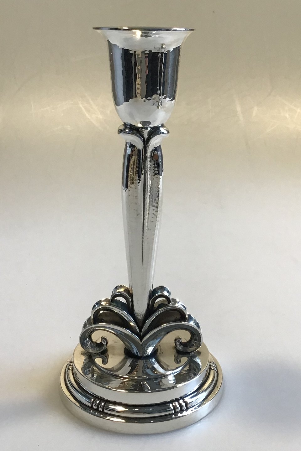 Evald Nielsen Sterling Sølv Enkeltstage Med løvdekoration på gradueret base H 20,0 cm Diam 9,5 cm Vægt 462 gr