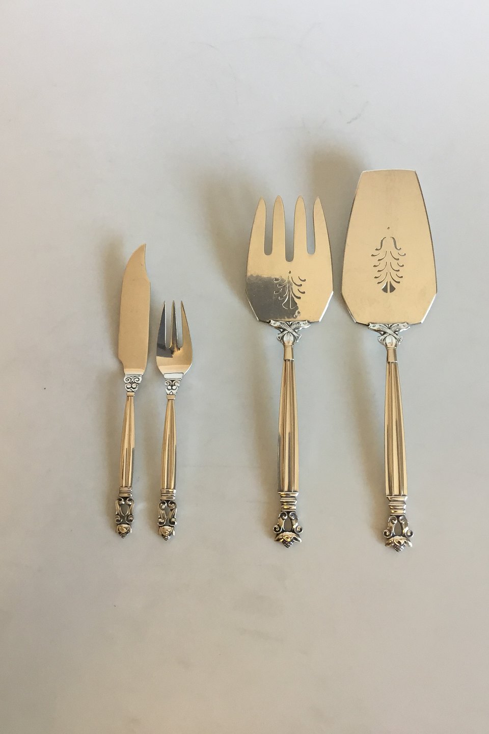 Georg Jensen Sterling Sølv Konge Fiskebestik til 12 personer incl.serveringssæt, ialt 26 dele