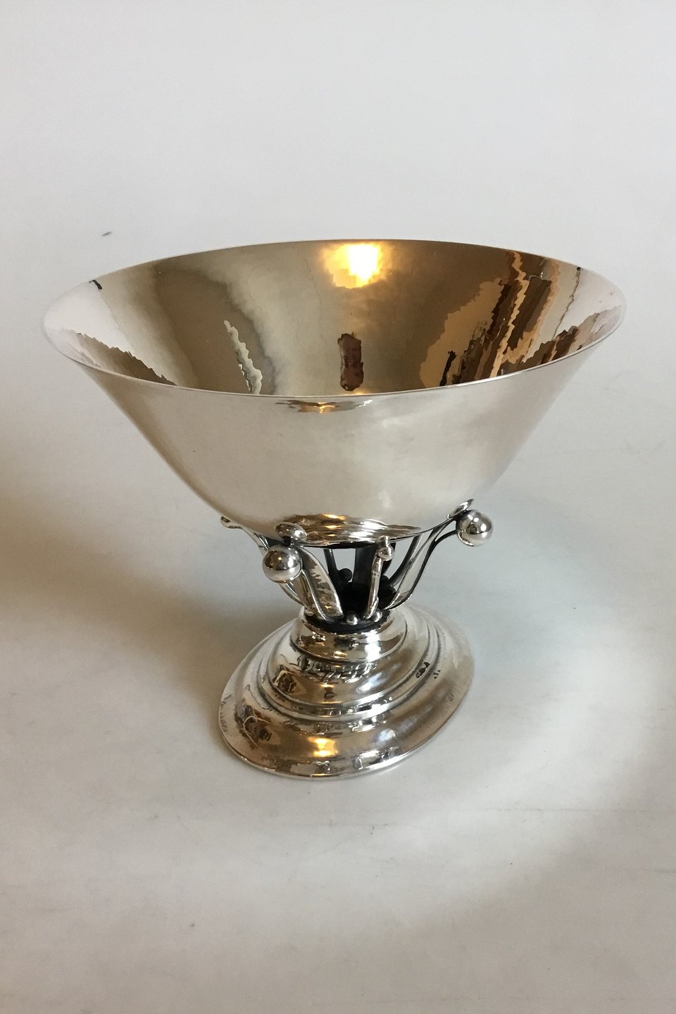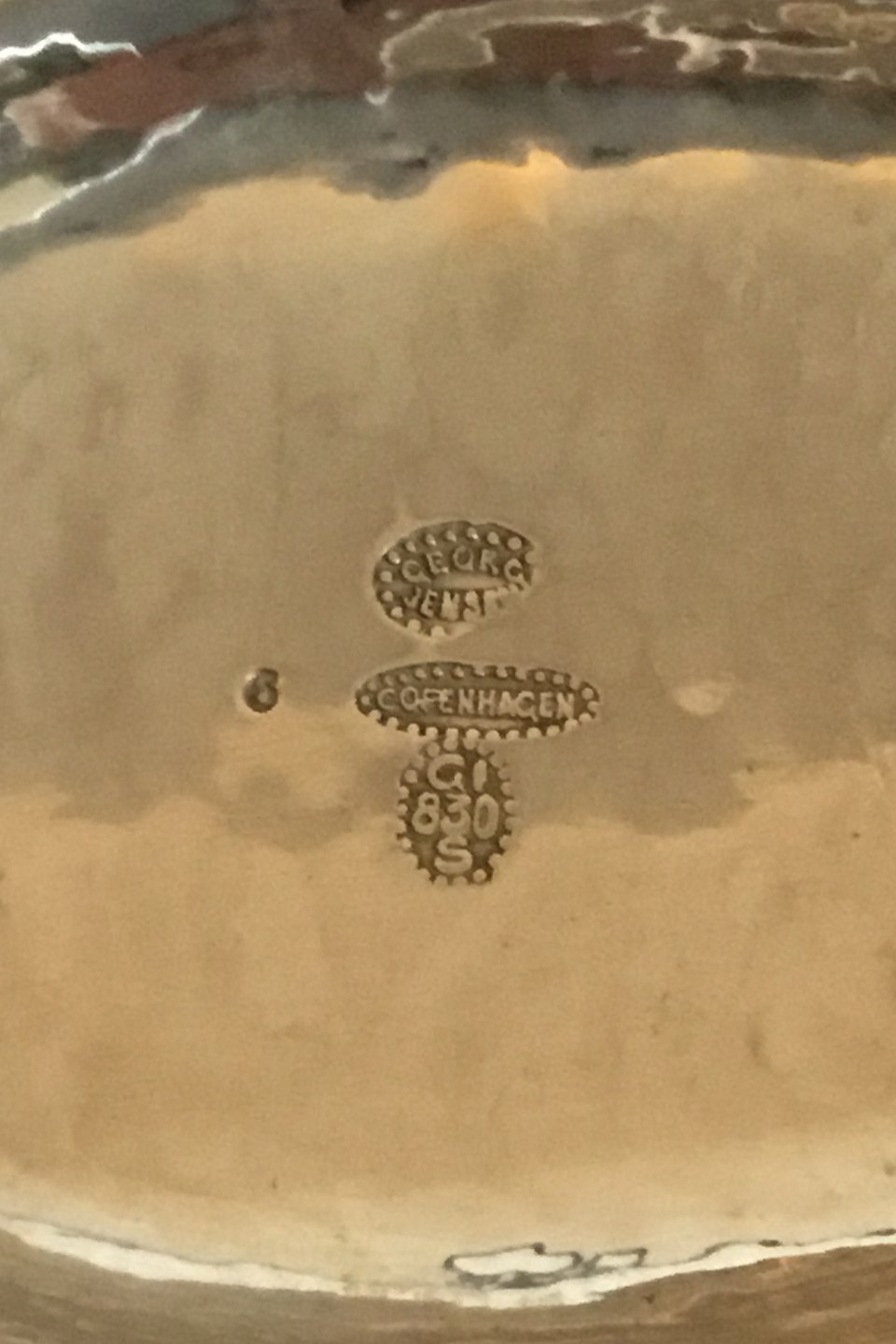 Georg Jensen Opsats af let hammerslået sølv. Ovalt fodstykke. No 6. Designet af Johan Rohde. Måler 13 cm x 15,8 cm dia. Vejer 350 gram. Afbildet i Janet & William Drucker's "Georg Jensen - 20th Century Designs. Fra 1915-1930