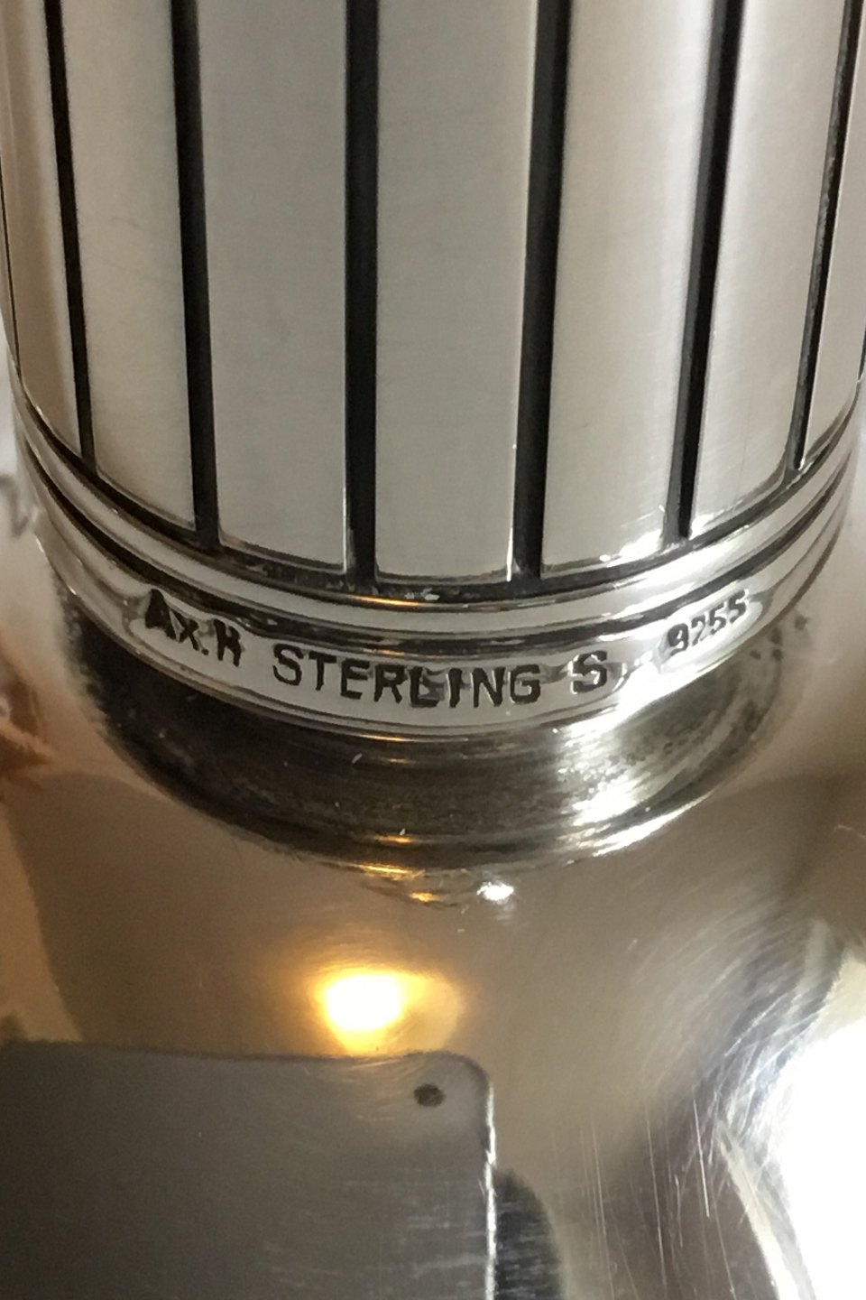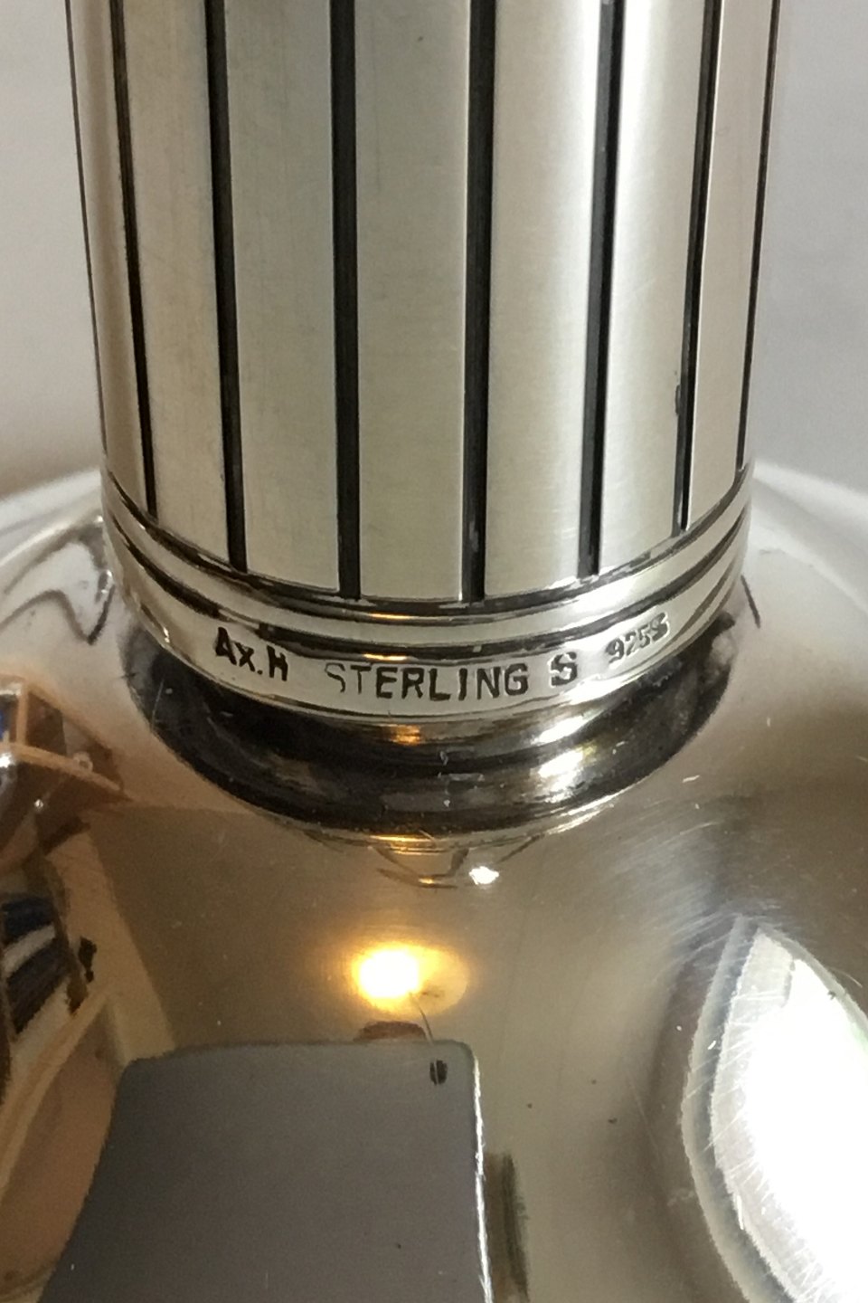 Axel Holm, København Sterling Sølv Par Lysestager. Måler 15,2 cm. Vejer 320 gram tilsammen. Bunden udfyldt. Buler på kanten af foden