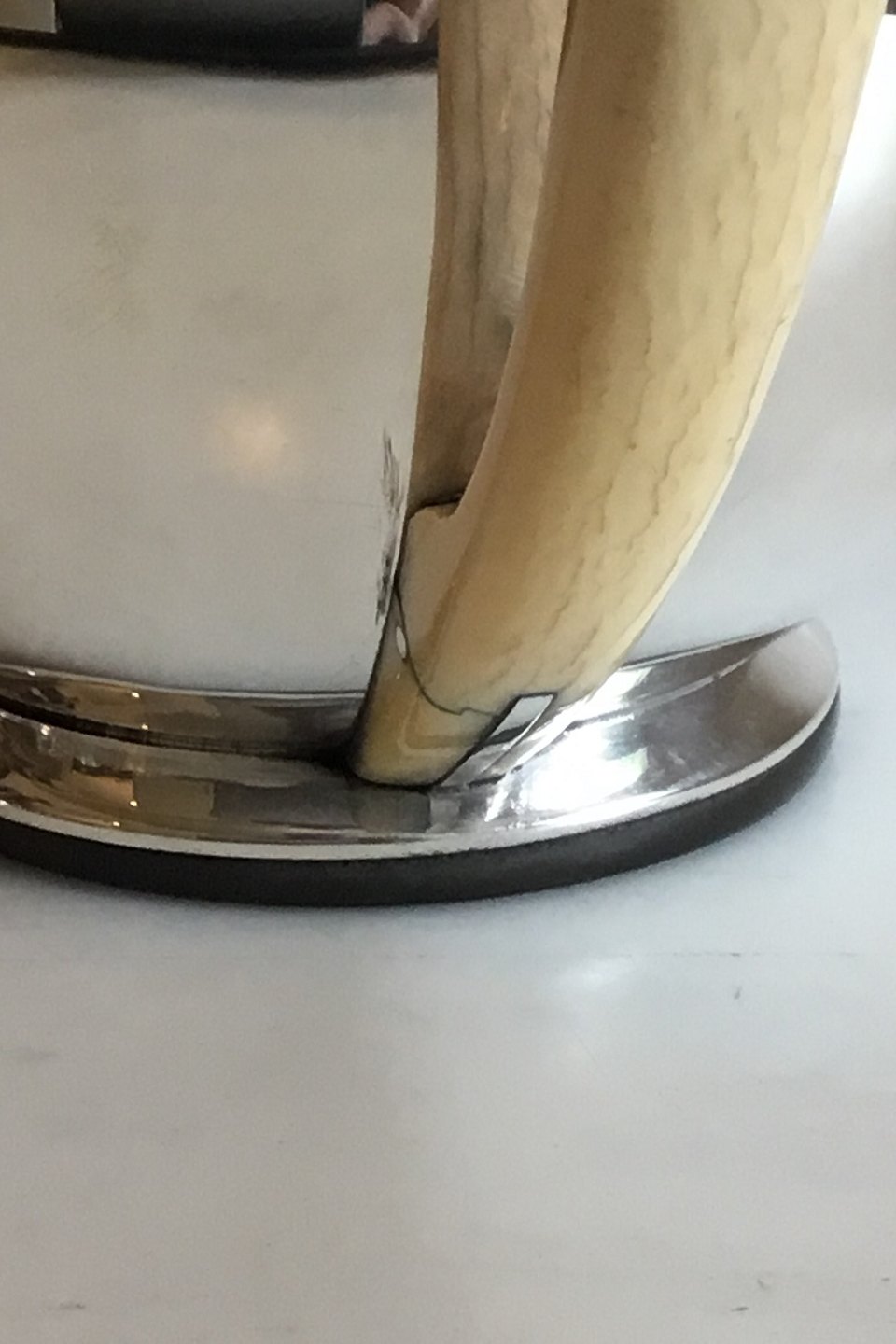 F. Hingelberg Aarhus Sterling Sølv Kugleformet kande med hank af ben. Måler 12,8 cm x 11,5 dia. Vejer 352 gram