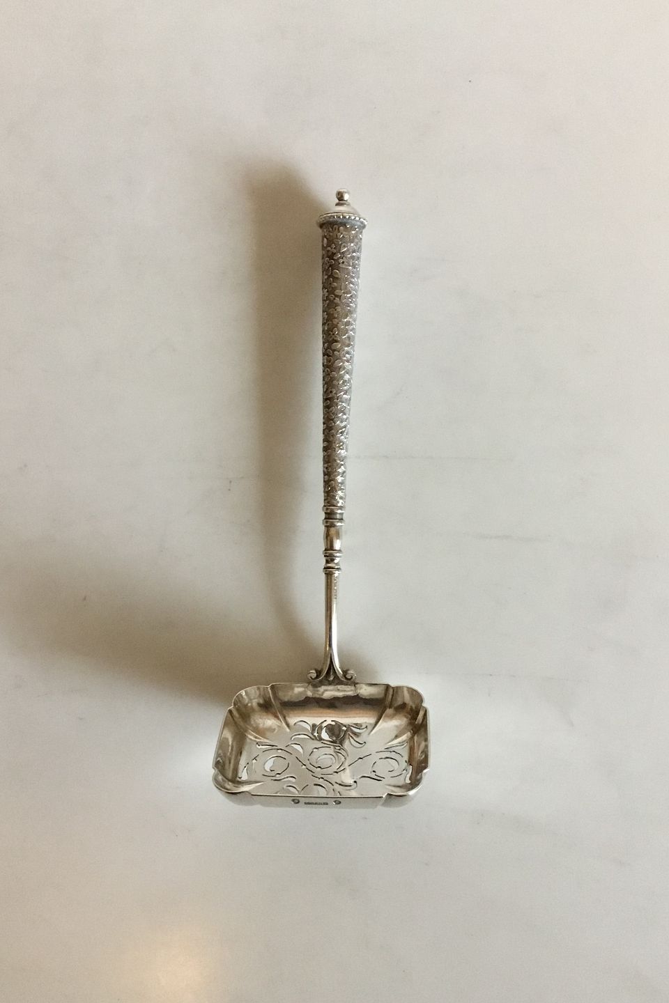 P. Hertz Strøske / Syltetøjsske i Sølv. Måler 17,7 cm