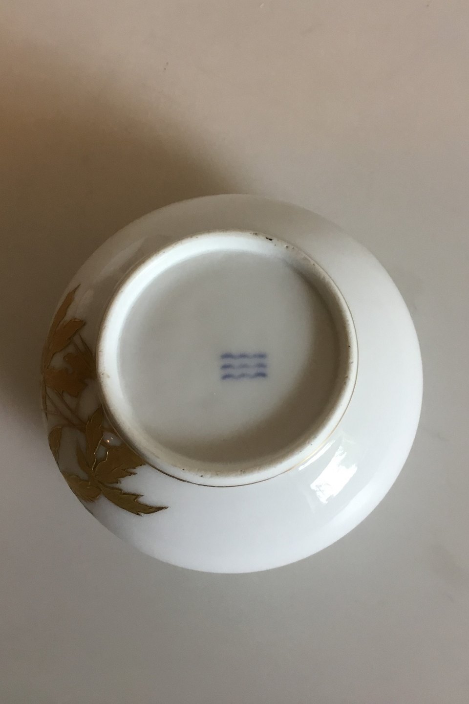 Royal Copenhagen Lille Skål med dekoration i Guld. Fra 1870-1890. I god stand. Måler 5,2 cm x 10,9 cm dia.