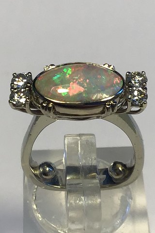 Georg Jensen 18 kt Hvidguld Ring Opal og Brillant Ringstr 45 Vægt 5,6 gr Stemplet GJ&W