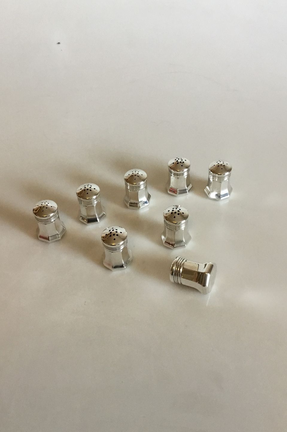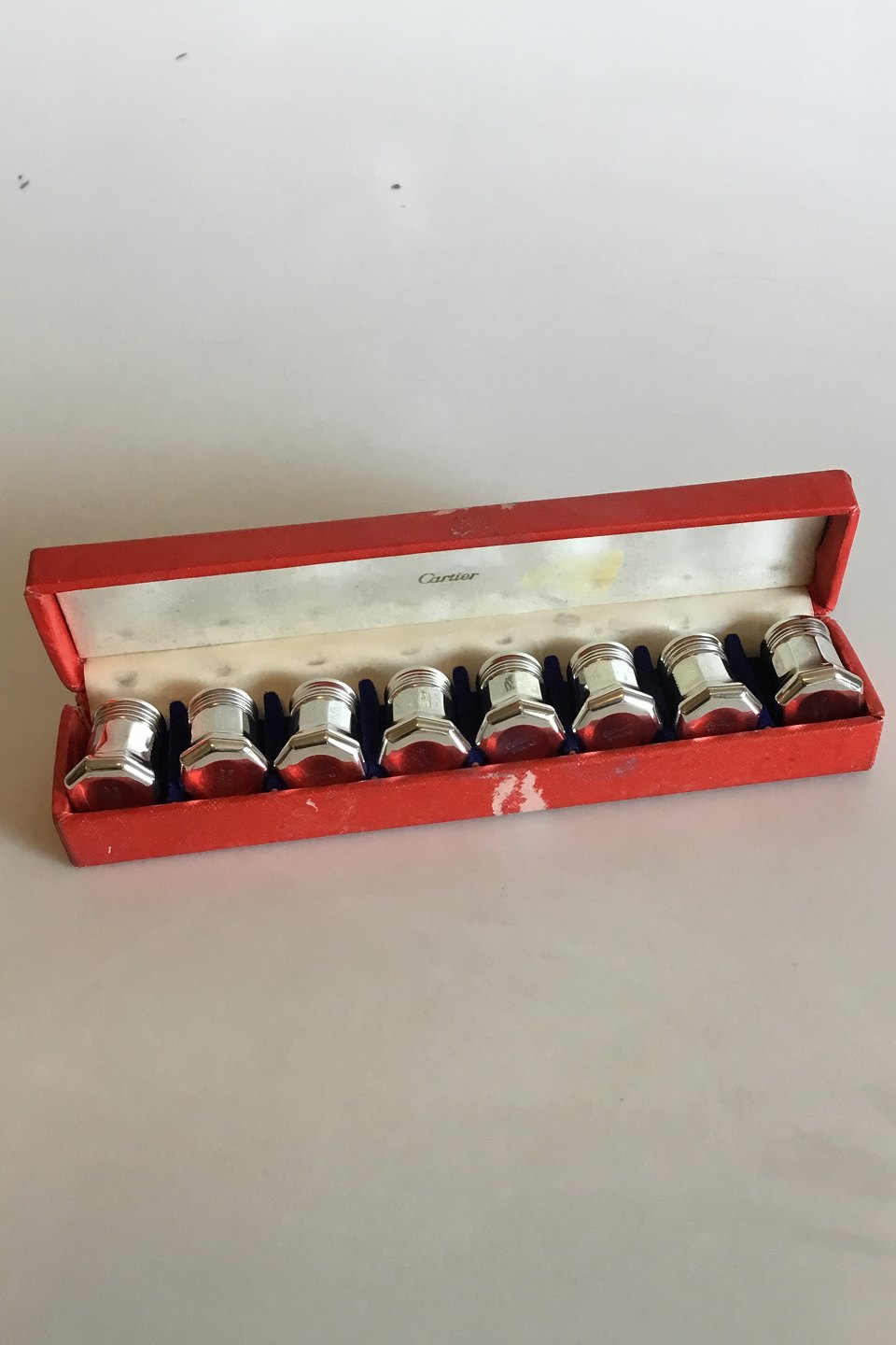 Cartier Sterling Sølv Sæt af 8 kuvert saltbøsser. Måler 3,7 cm. Vejer 9 gram pr. stk. Original æske medfølger