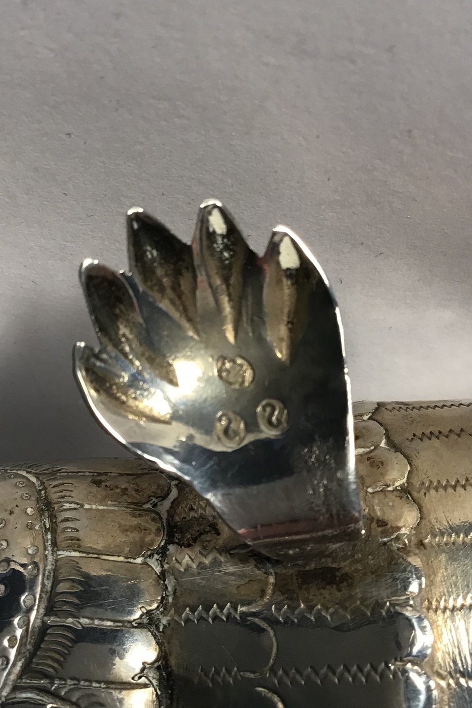 Alligator / Krokodille i sølv med bevægelige led. Grønne flus-øjne L 21.5 cm