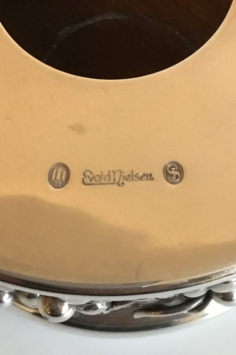 Evald Nielsen Sølv Et par Flaskebakker med træindlæg. Fra 1935. Måler 11,5 cm dia x 7,8 cm. Vejer tilsammen 615 gram uden træindlæg
