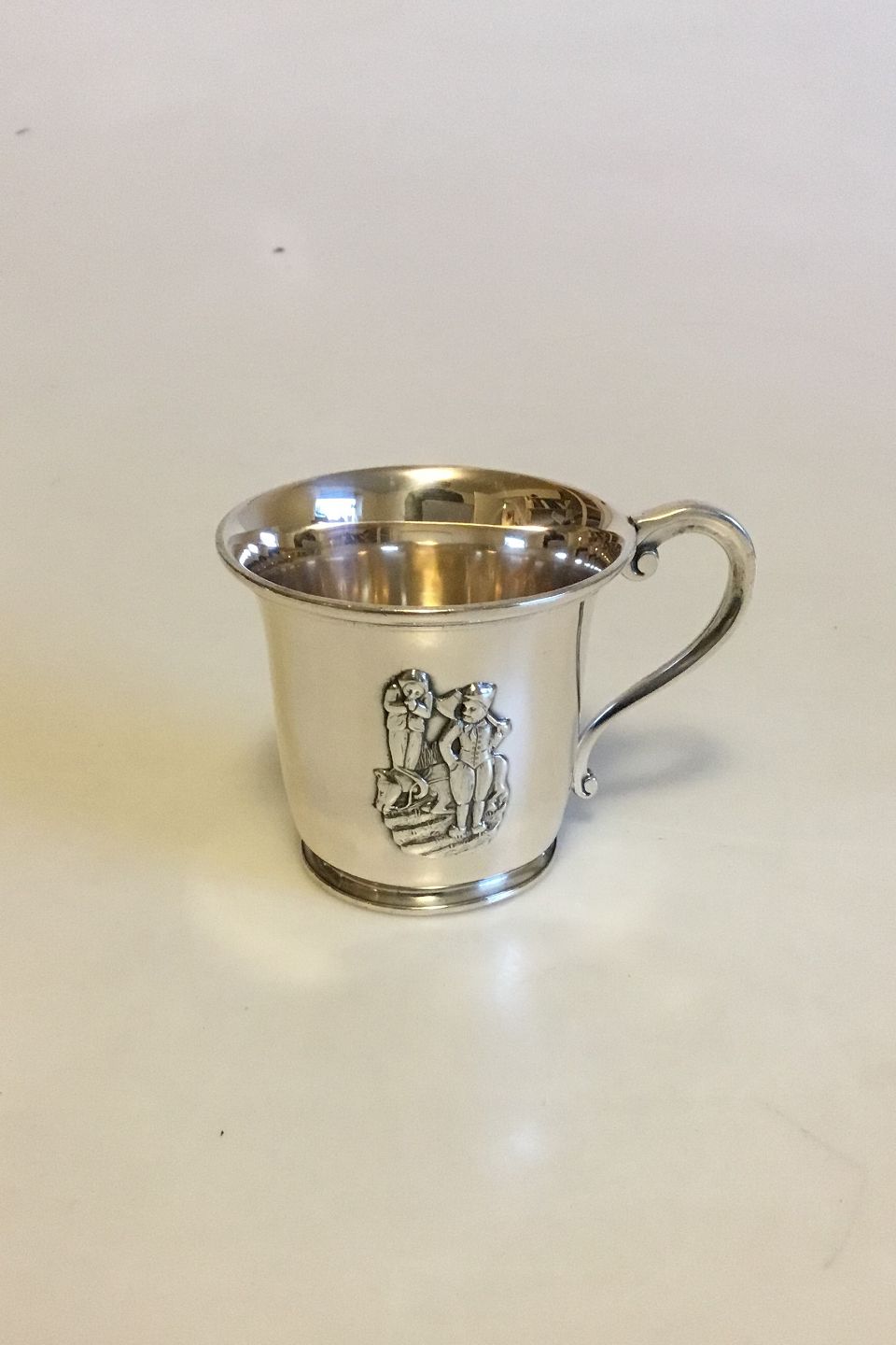 Barnekop i Sølv med motiv fra "Lille Claus og Store Claus" af HC Andersen. Måler 6,3 cm. Vejer 92 gram