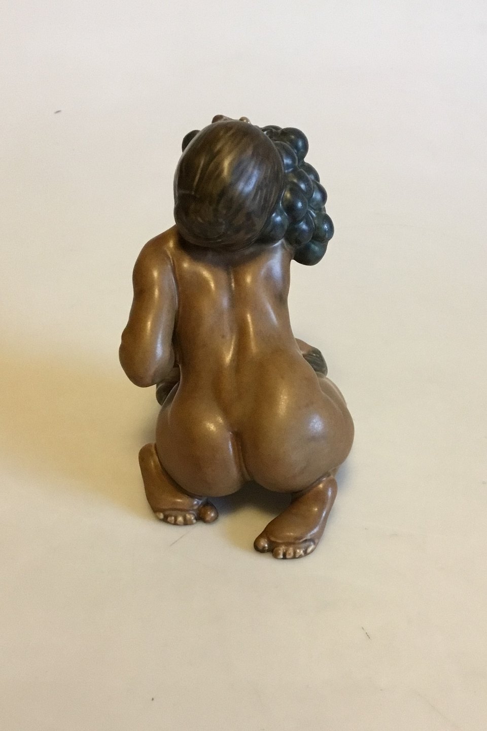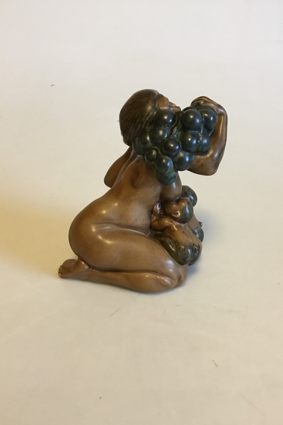 Bing & Grøndahl Figur af Kai Nielsen "Kvinde med druer og Faune" No 4022 fra Druehøstserien. Designet i ca. 1915. Måler 14 cm