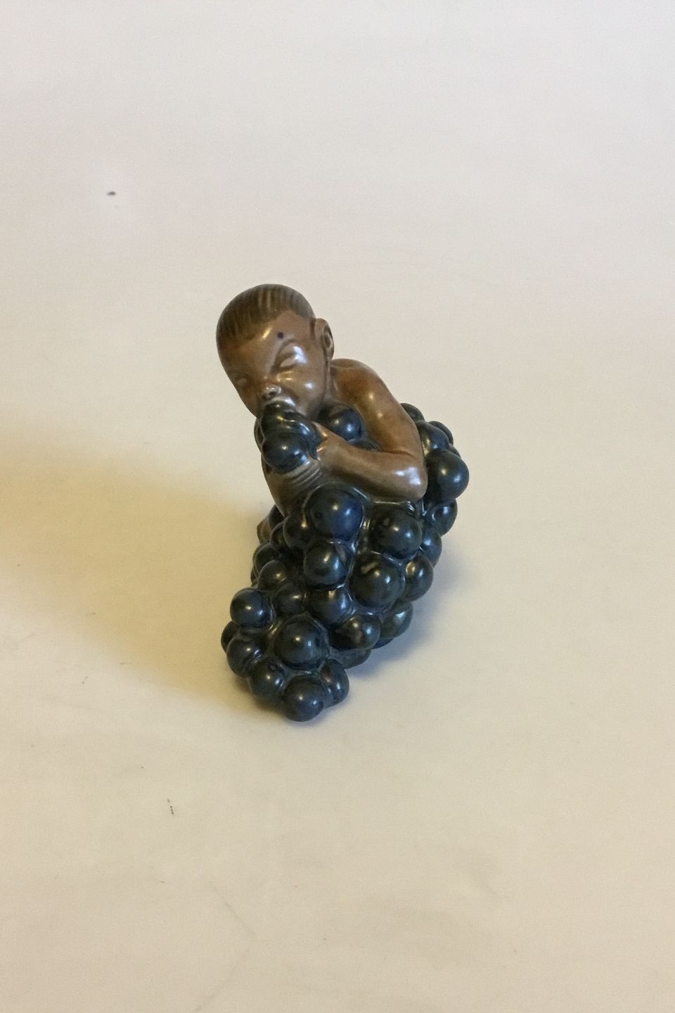 Bing & Grøndahl Figurine by Kai Nielsen "Little Bacchus with Grapes" No 4021 from The Grape Harvest Series. Designed in approx. 1915. Measures 9.5 cm / 3 47/64 in.