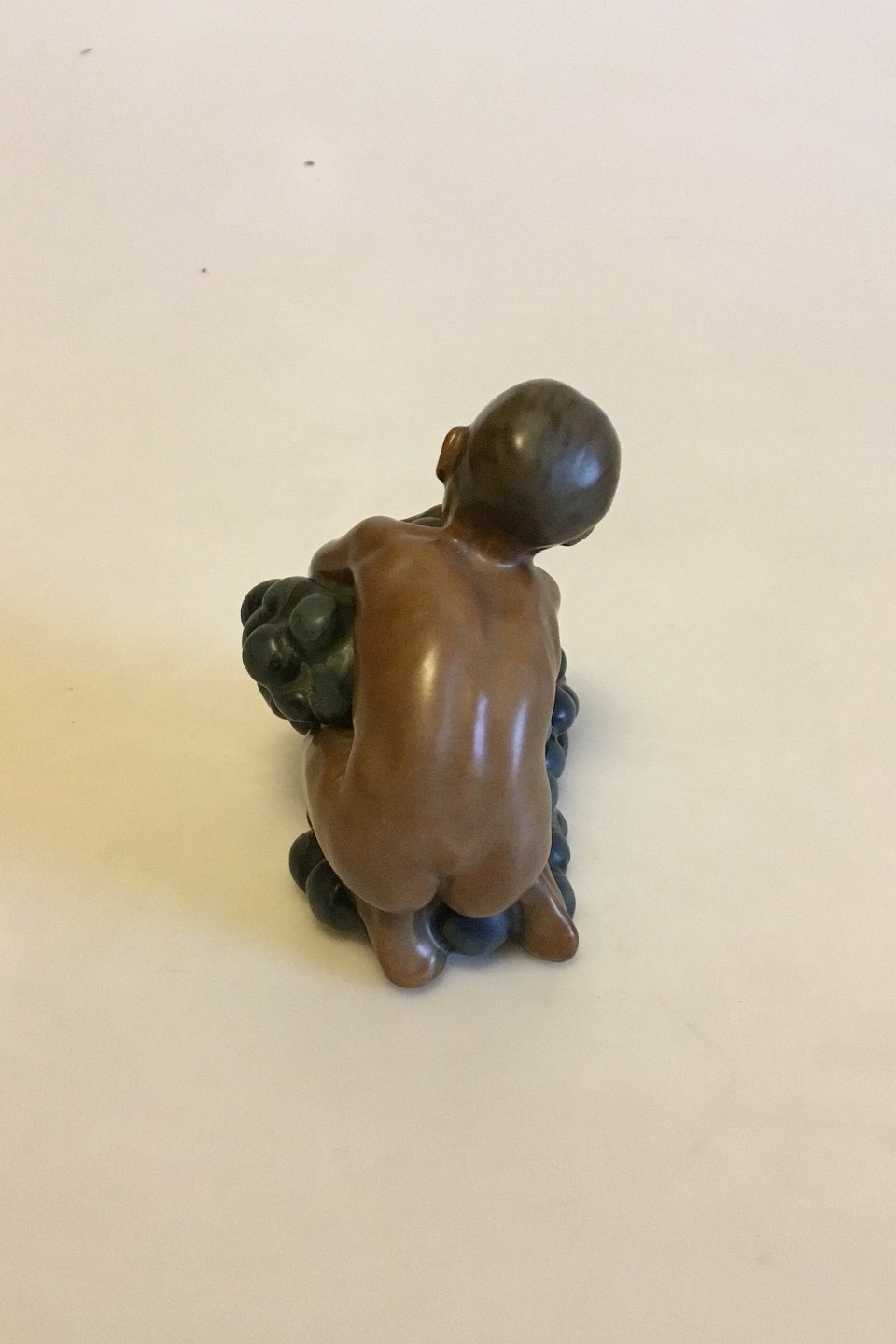 Bing & Grøndahl Figur af Kai Nielsen "Lille Bacchus med druer" No 4021 fra Druehøstserien. Designet i ca. 1915. Måler 9,5 cm