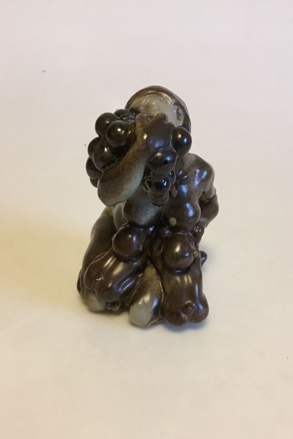 Bing & Grøndahl Figur af Kai Nielsen "Kvinde med druer og Faune" No 4022 fra Druehøstserien. Designet i ca. 1915. Måler 14 cm